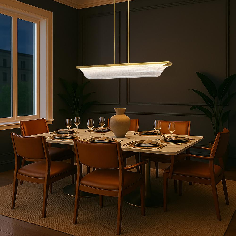 Idris; LED Island Pendant; Vintage Brass Finish; Light Guide Panels