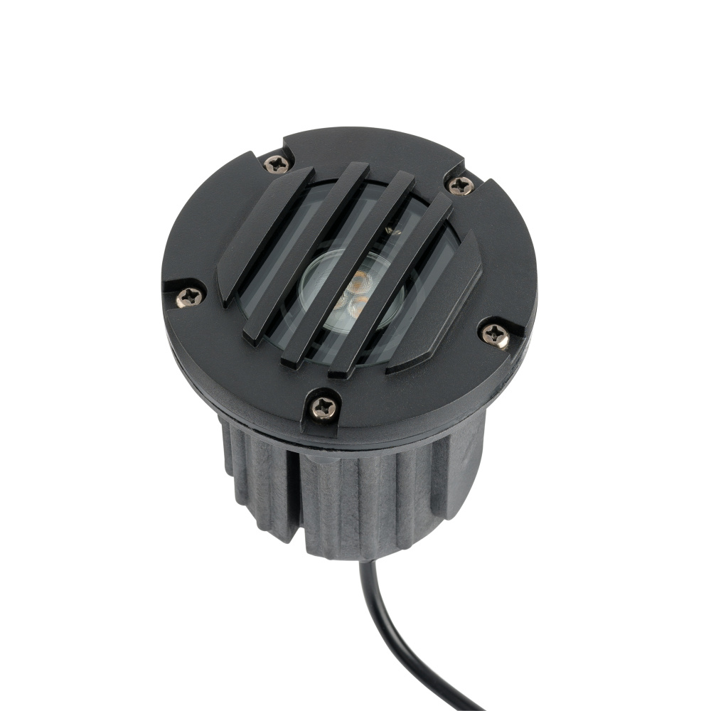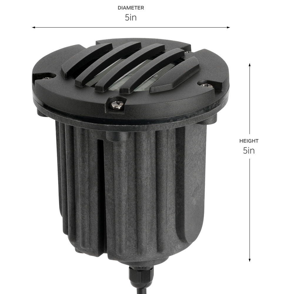 12V Brass Rock Guard In Ground with Lens in Black BrassĀ is an in-ground fixture with articulating adjustability. Features a sealed glass enclosure to protect against debris and water, and is gasketed and threaded to the fixture with lamp clips for installation ease. The plastic composite sleeve is great for well light applications, and its rock guard and cowl top allows the fixture to be exposed and the light to be adjusted above the fixture. The Articulating Well Light with Rock guard is made of Black Brass. This solid, thick-walled, cast brass fixture are ideal for most environments, including harsh coastal climates and is backed by a 10 year warranty.