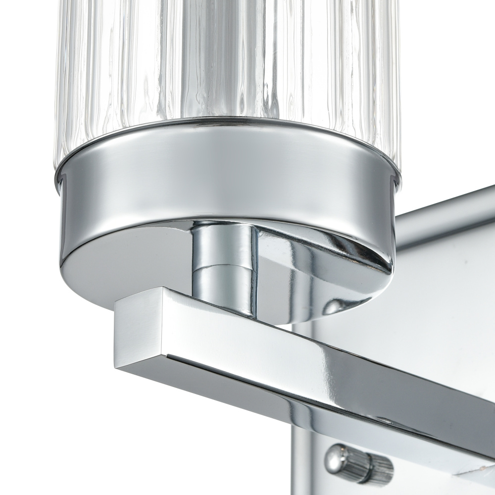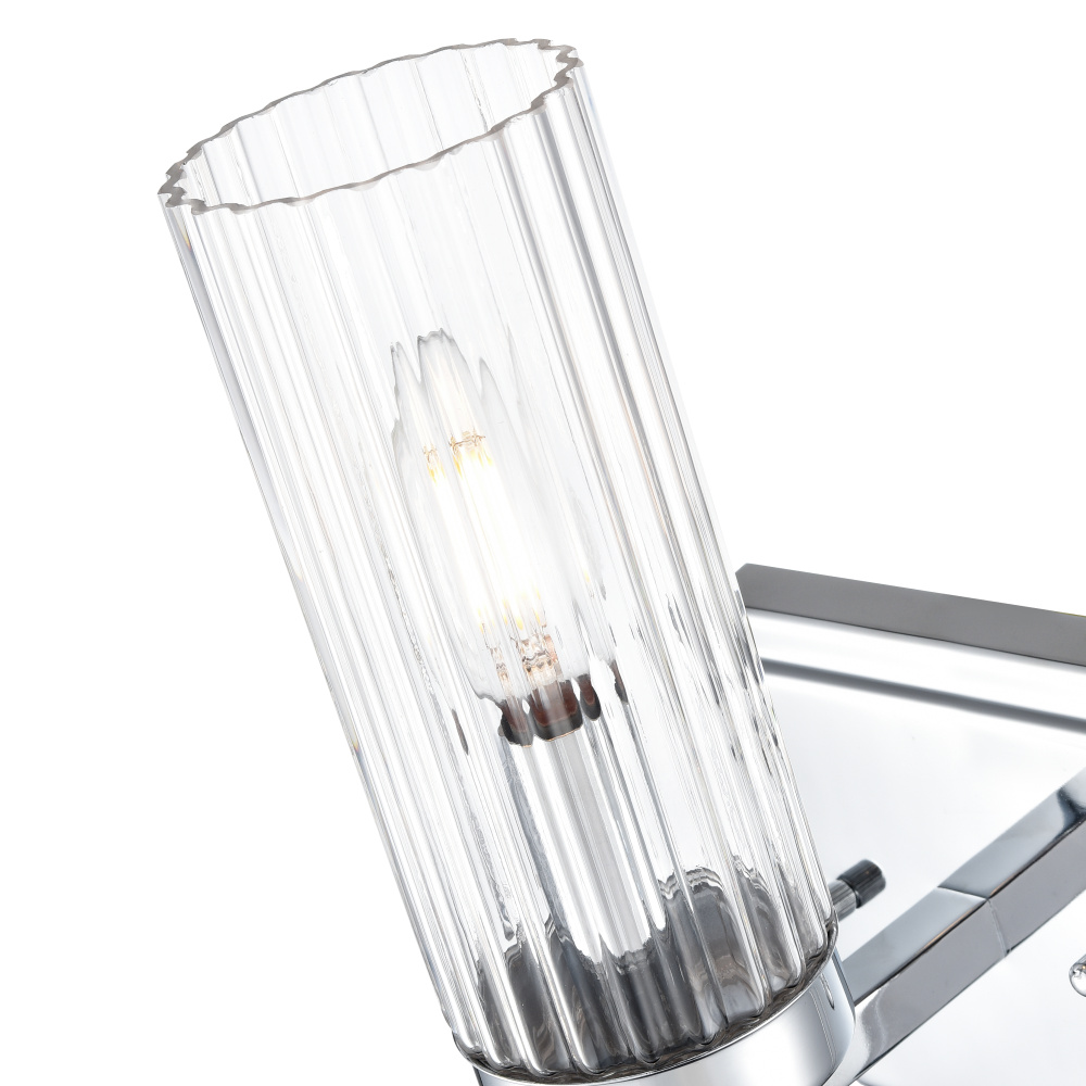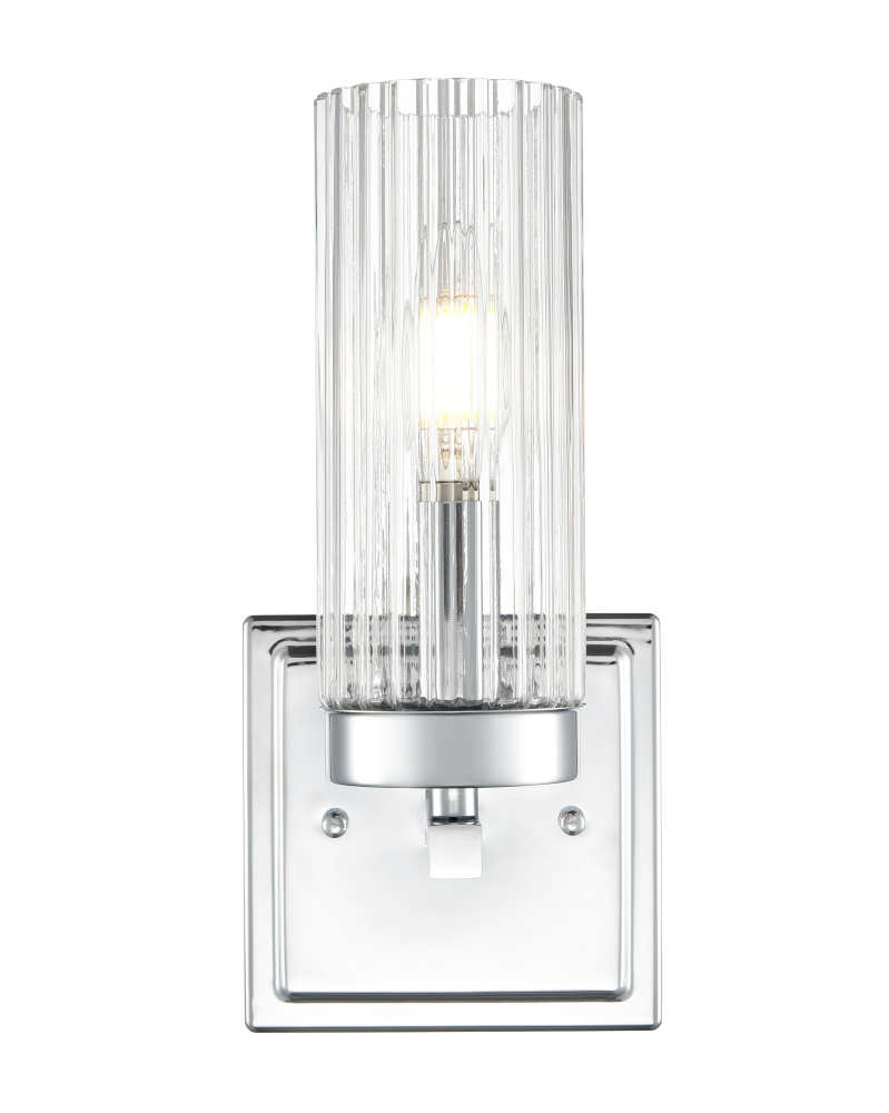 The Iversen Family of vanity and sconce lighting is distinguished by a blend of sleek lines accentuated with post-industrial style hardware. From the square backplate with inset design, to the sparkling clear reeded glass shades, the result is a dazzling play of light perfect for bath or hallway. These exceptional fixtures are available as 1-light sconces and 2-, 3-, or 4-light vanity lamps and are finished in brushed nickel, chrome, matte black, or vintage brass.