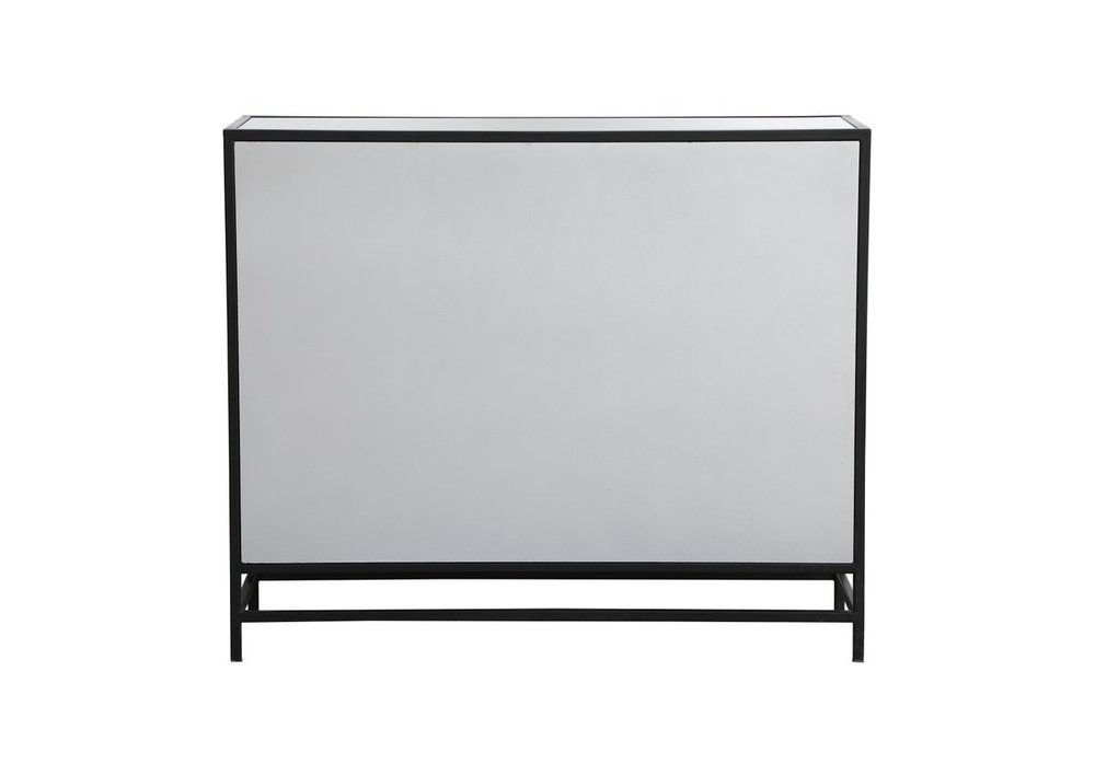 Crafted with mdf, clear mirror panels, and acrylic handles with metal accents