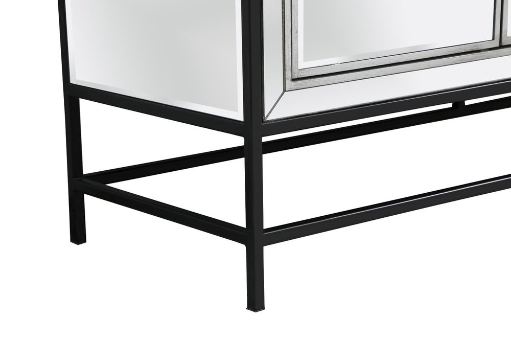 Bring plenty of storage space and modern style to your living room, dining room or entryway with this mirrored credenza. This was made to withstand everyday use. Deep drawers to hold up to 66 pounds and opens quietly. Four doors open to reveal one shelf in each cabinet for barware, fine china, and table linens. This versatile credenza blends in easily with any décor and easy to maintain. Ships fully assembled and ready to use. With anti-tip straps included for added security, this modern addition will complete your room.