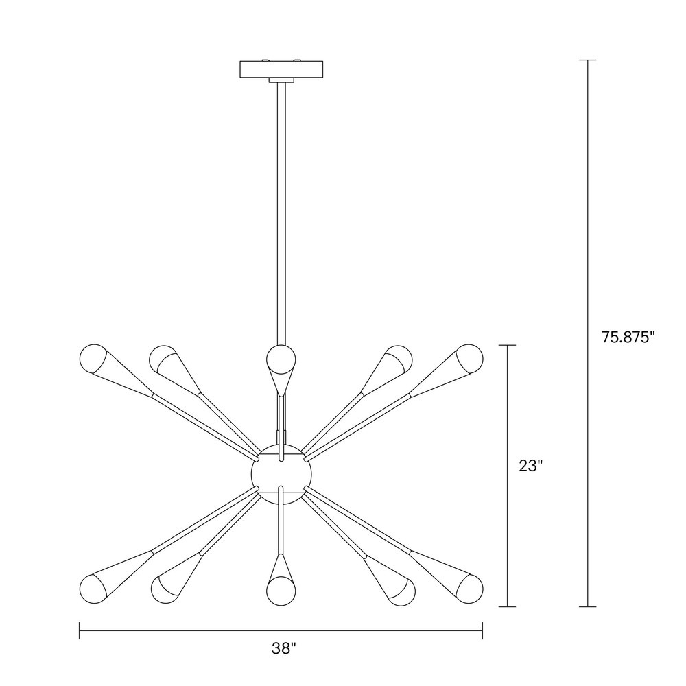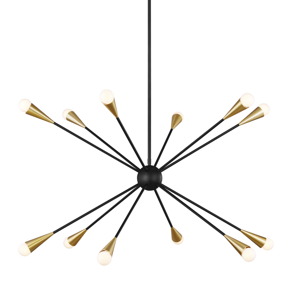 The Jax twelve light single tier chandelier in midnight black enhances the beauty of your home with ample light and style to match today's trends. Jax channels the celestial allure of a starburst silhouette, celebrating its iconic status within classic art deco design. Three finish options - including Burnished Brass, Polished Nickel and a stunning two-tone Midnight Black/Burnished Brass combination - make a refreshingly modern statement.