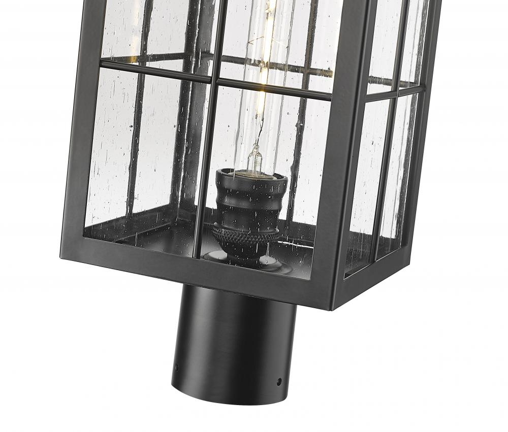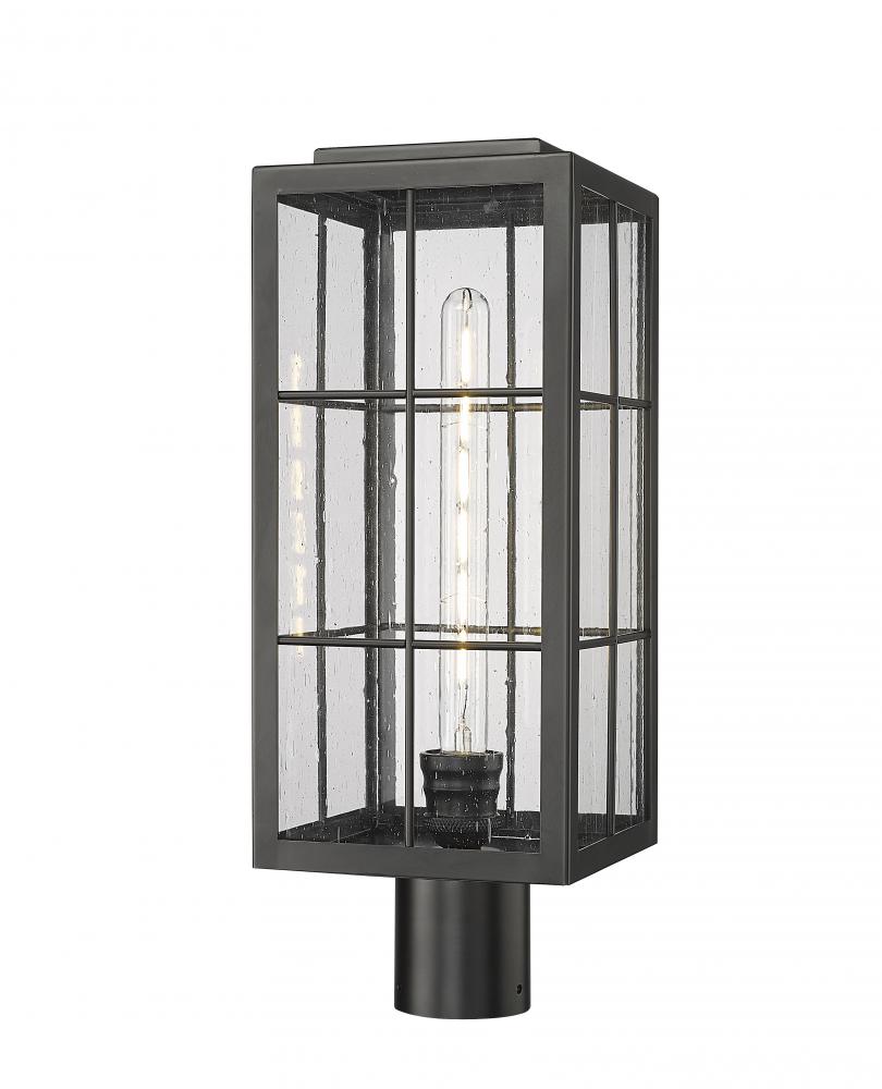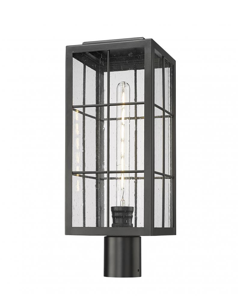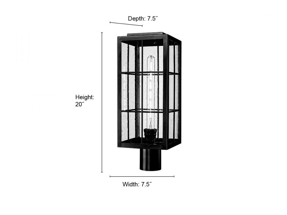 Inspired by industrial design elements, the Jaxson Collection redefines outdoor lighting solutions from the front porch to the end of the drive. Clear seeded glass panels are ensconced in a steel, open cage style fixture, finished in powder coat black, highlighting the classically styled sockets. Available as 2-light outdoor sconces or 1-light hanging or post lamp.