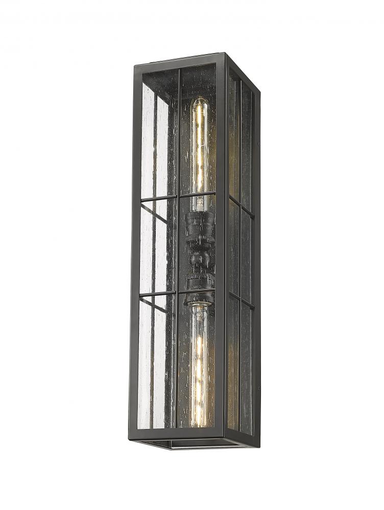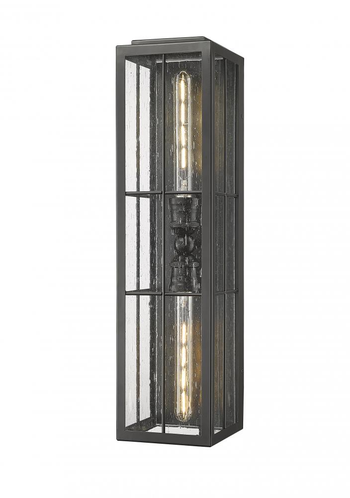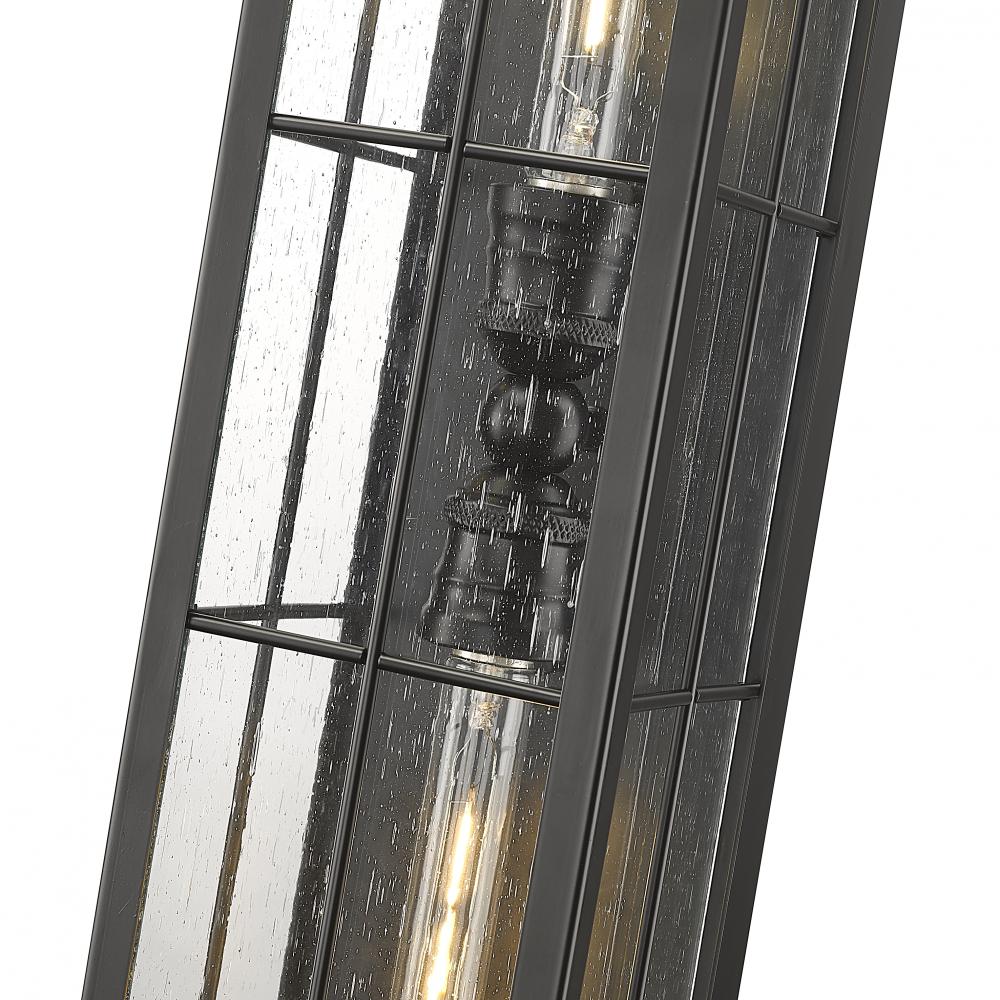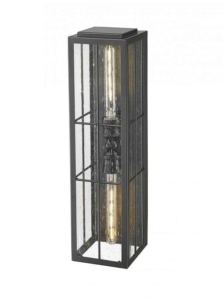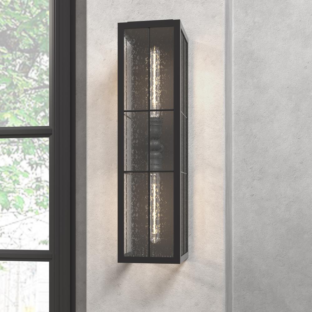 Inspired by industrial design elements, the Jaxson Collection redefines outdoor lighting solutions from the front porch to the end of the drive. Clear seeded glass panels are ensconced in a steel, open cage style fixture, finished in powder coat black, highlighting the classically styled sockets. Available as 2-light outdoor sconces or 1-light hanging or post lamp.