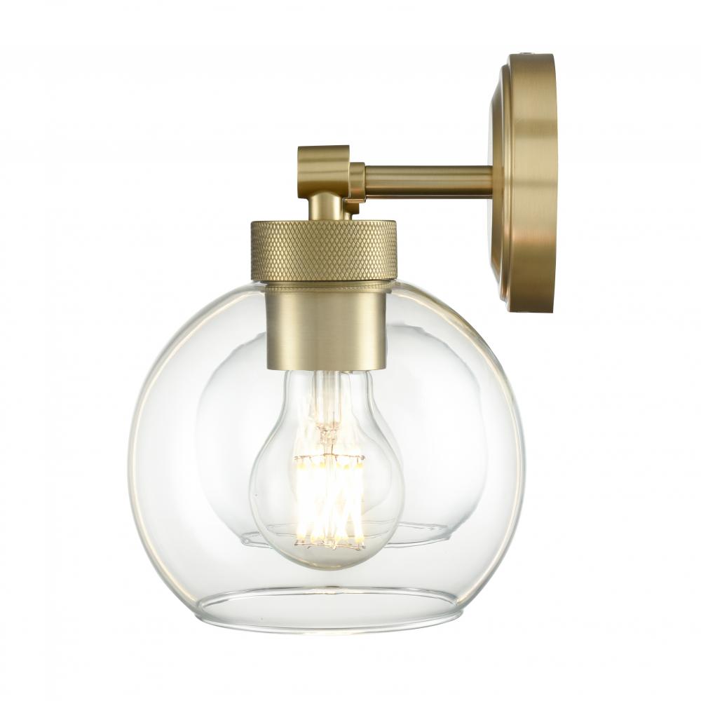 The Jonatan Family of vanity lighting seamlessly fuses modern and industrial design for optimum effect. The sleek fixtures, with hinged-style embellishments, are finished in either matte black or vintage brass. The clear glass globes complete the timeless aesthetic and provide the perfect amount of over-the-vanity lighting, available in 1-, 2-, 3-, and 4-light options.