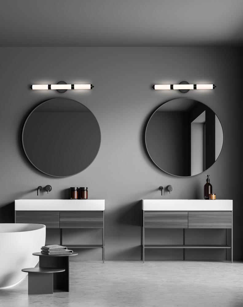 The Kagen bathroom vanity collection is a stylish and modern set of lighting fixtures. This series includes three sizes to choose from and your choice of brushed nickel or matte black finishes, providing a sleek and contemporary look. The white acrylic len