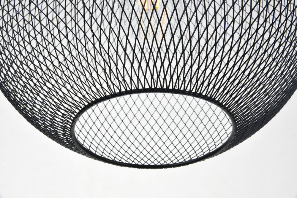 The sophisticated Keller hanging pendant lamp offers a contemporary design and will enlighten your home’s entryway, kitchen, bedroom, den, or rec room. Its distinctive shade, comprised of black metal, features a matrix design with the woven appearance of netting. When lit, the lamp radiates vivid shadows throughout the room. The fixture accepts a filament-style incandescent or LED blurb, and is supported with a disk-shaped canopy.