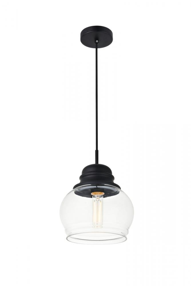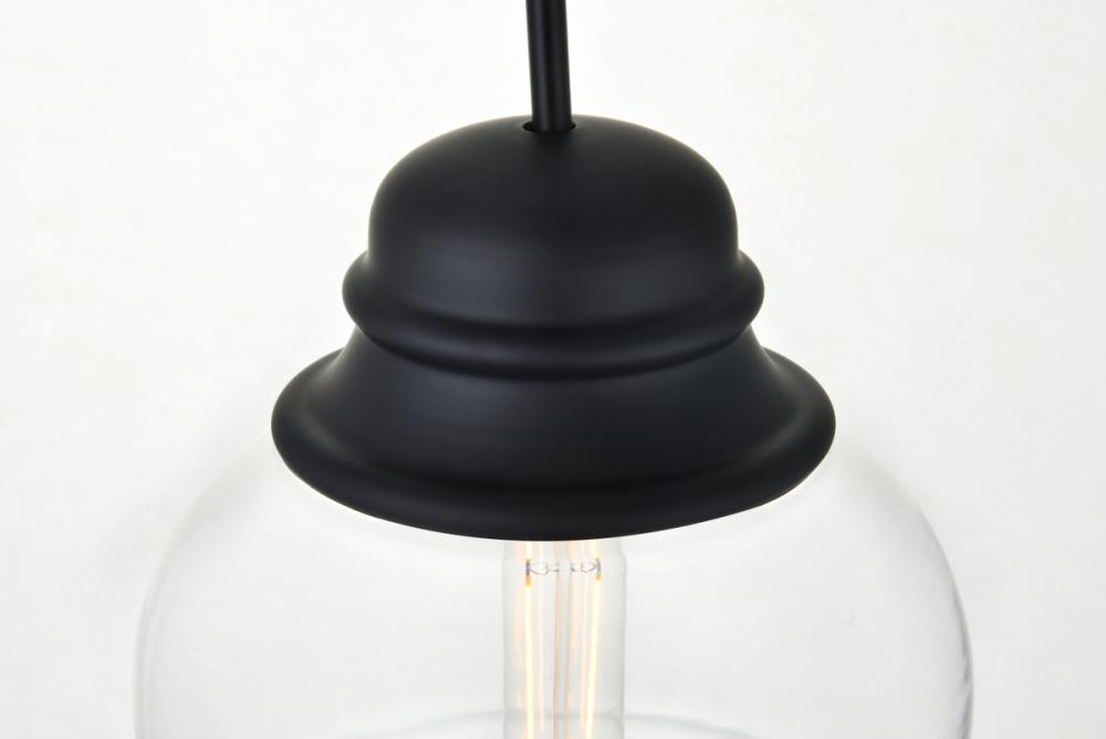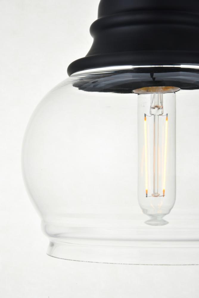 Feature 1: pendant lamp features a black and clear glass sugar pot shade with open center for easy bulb replacement; requires an incandescent or led e26 bulb (not included)