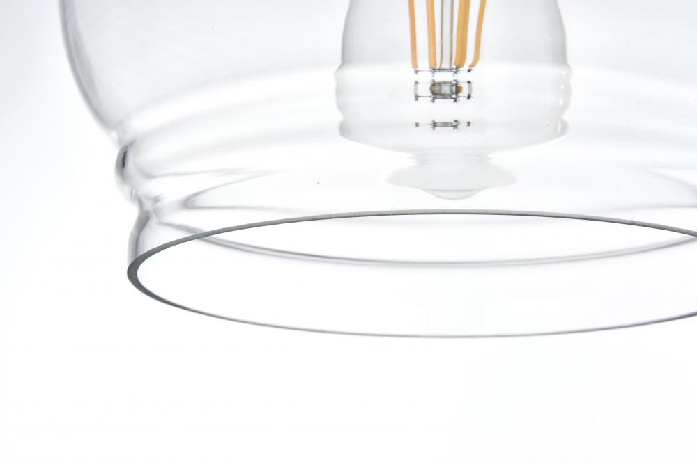 Features a clear glass shade, offering bright, unobstructed light and a clean, modern look.