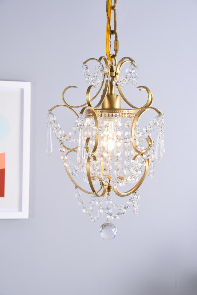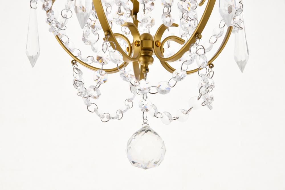 The fanciful look also features crystal spears and a multifaceted crystal ball suspended below.