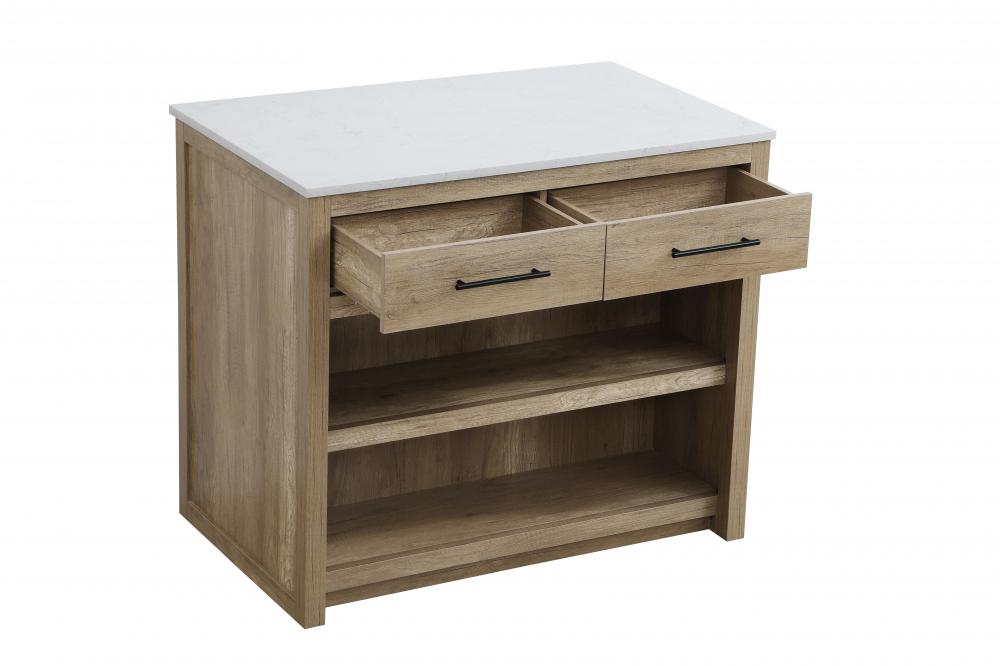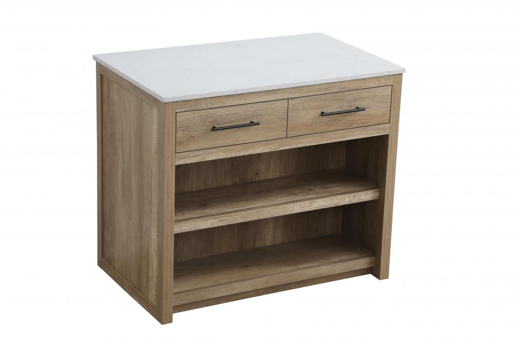 Upgrade your kitchen with this versatile kitchen island that combines functionality and style. Measuring 42" L x 26" W x 36" H, this piece features a sleek engineered marble countertop perfect for meal prep or casual dining. The overhang on one side provides space to seat two barstools, making it an ideal solution for cozy breakfasts or entertaining guests.