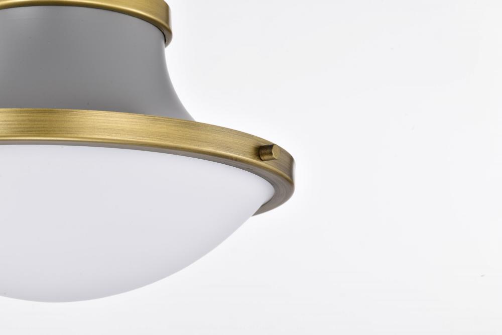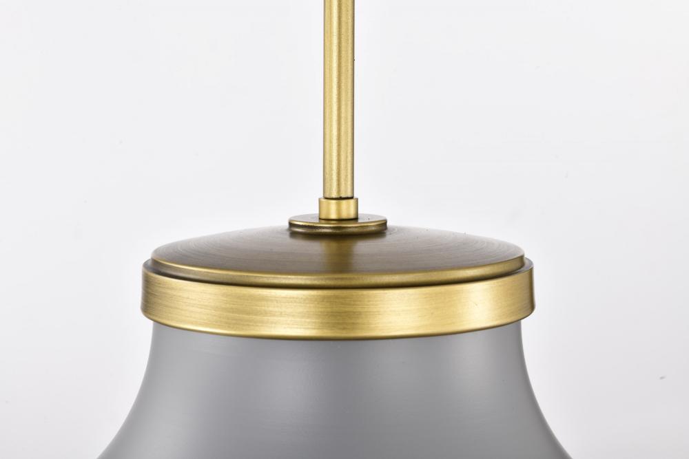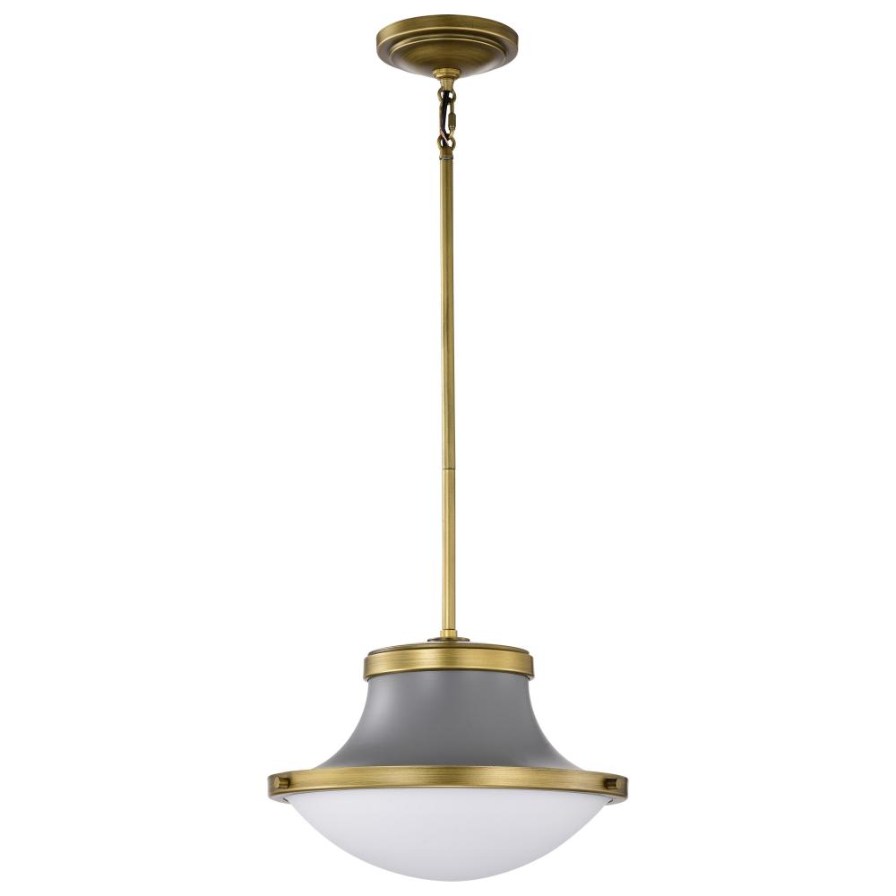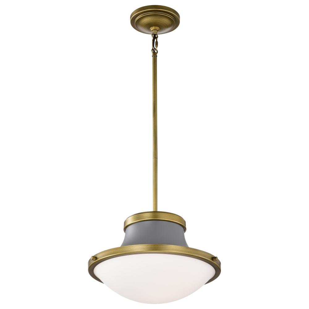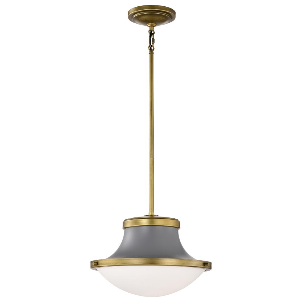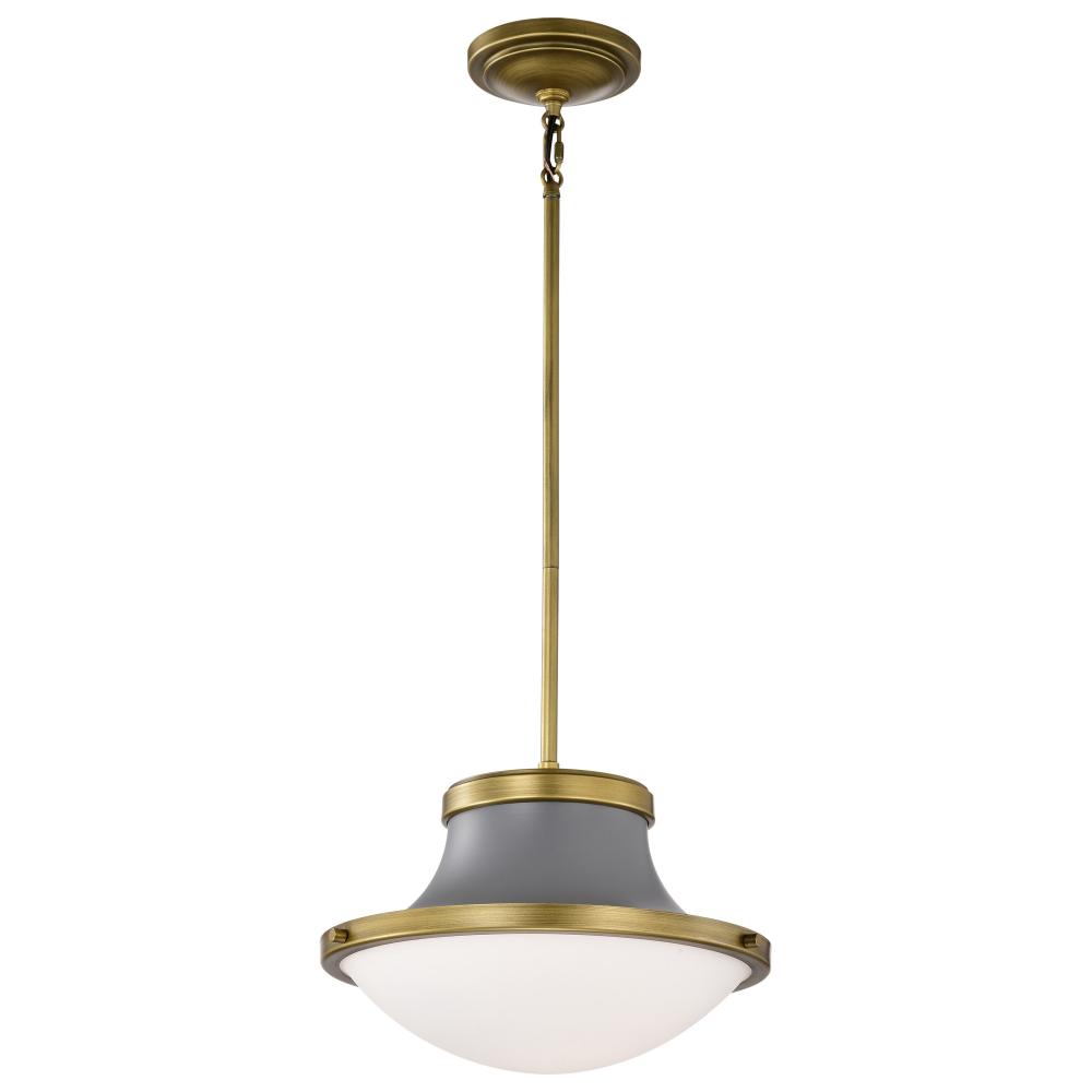 Lafayette 1 Light Pendant; 14 Inches; Gray Finish with Natural Brass Accents and White Opal Glass