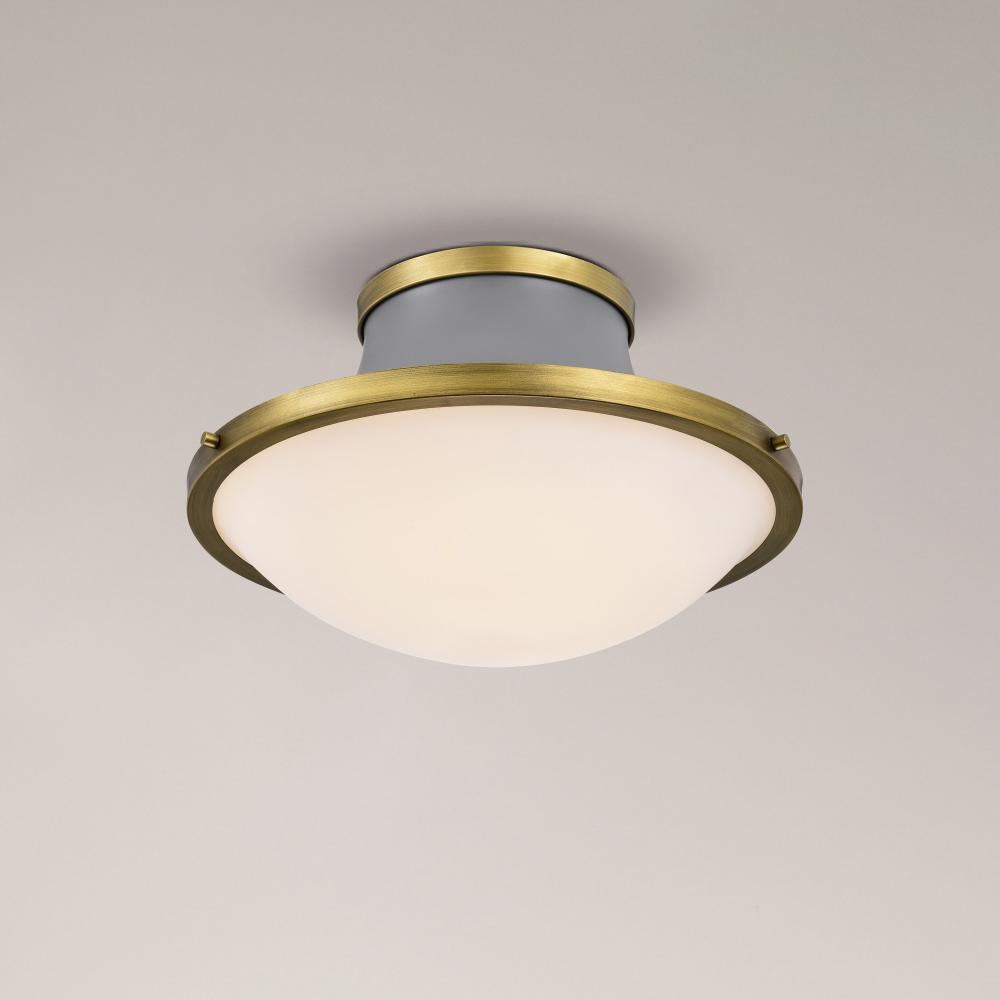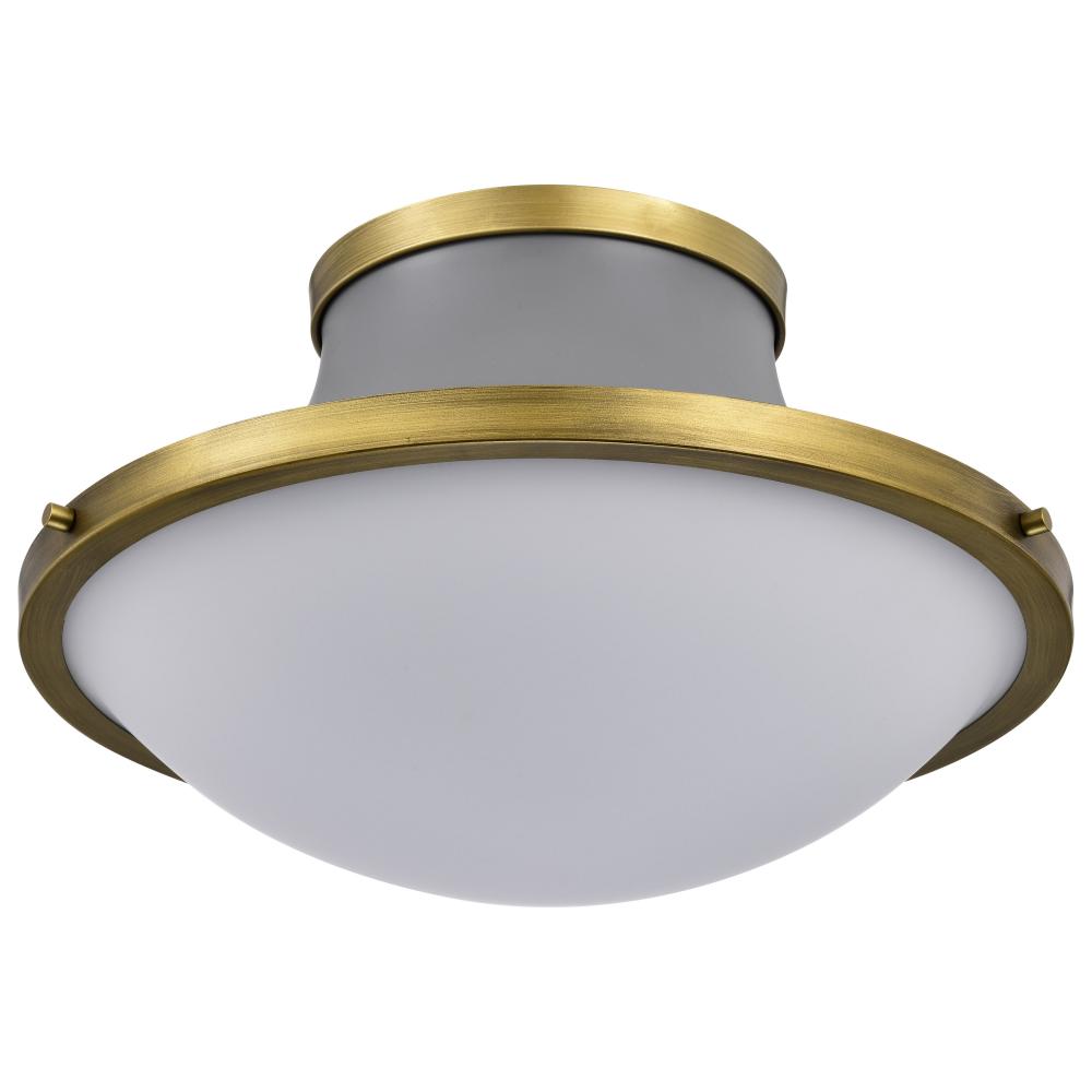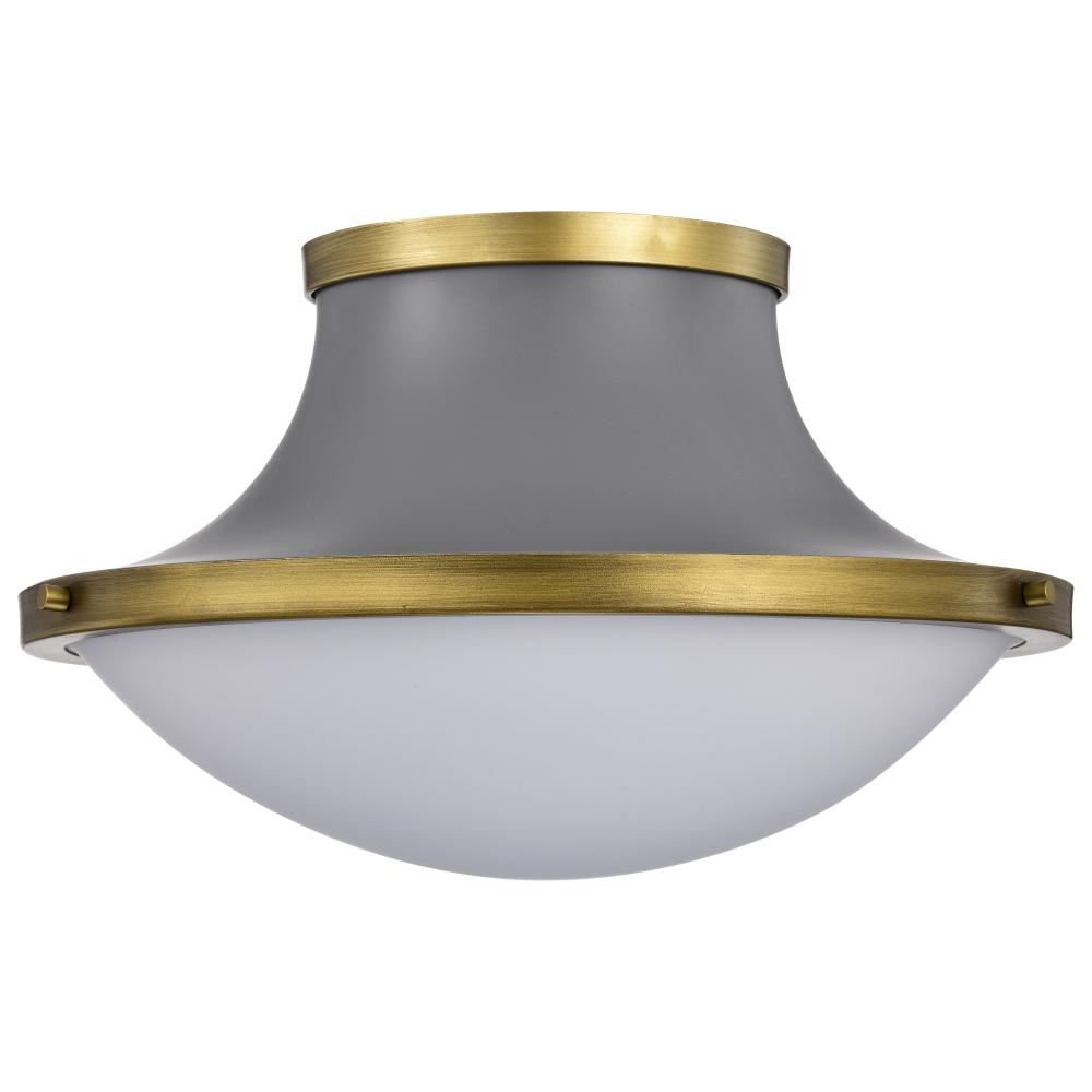 Lafayette 3 Light Flush Mount Fixture; 18 Inches; Gray Finish with Natural Brass Accents and White Opal Glass