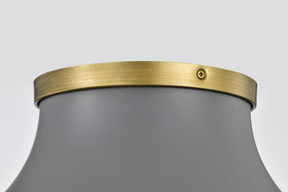 Lafayette 3 Light Flush Mount Fixture; 18 Inches; Gray Finish with Natural Brass Accents and White