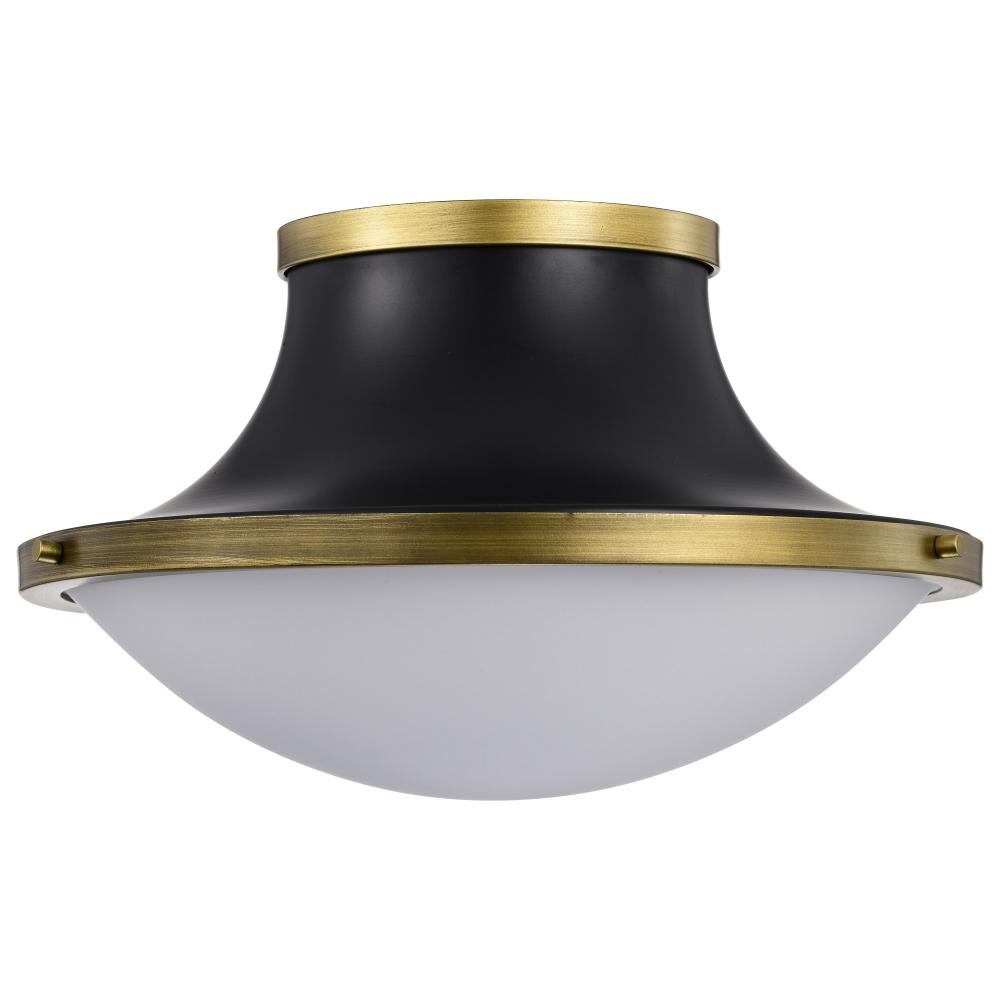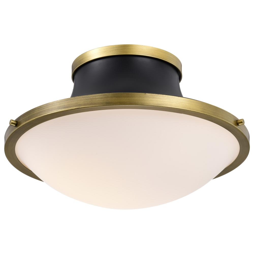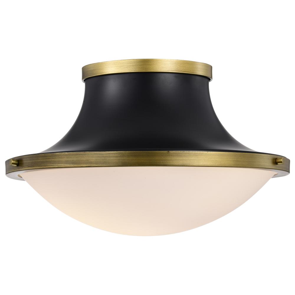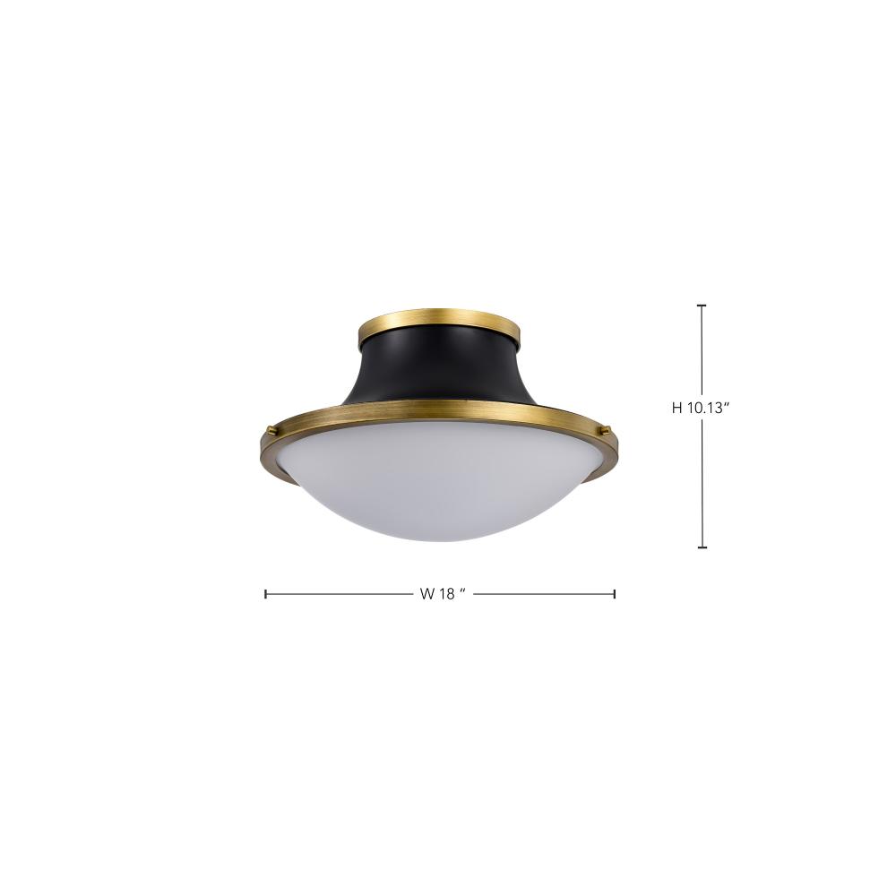 Lafayette 3 Light Flush Mount Fixture; 18 Inches; Matte Black Finish with Natural Brass Accents and White Opal Glass