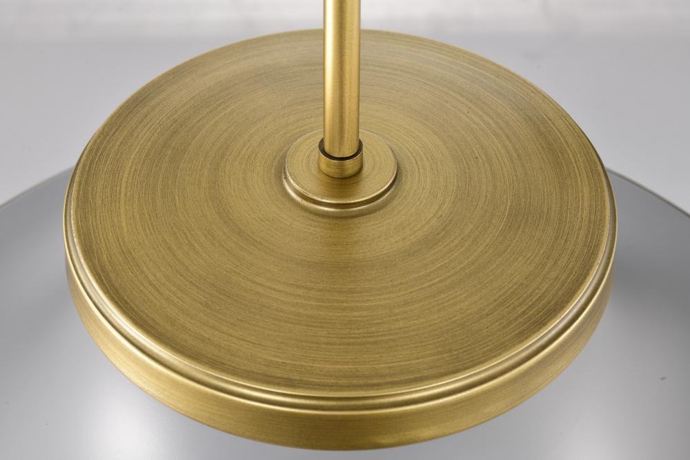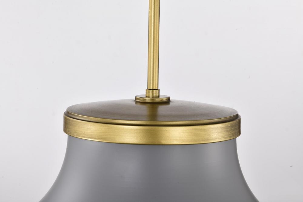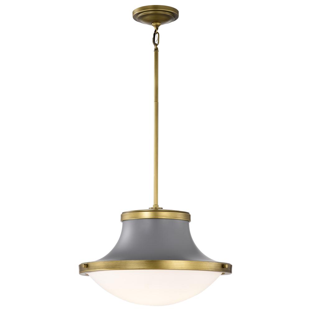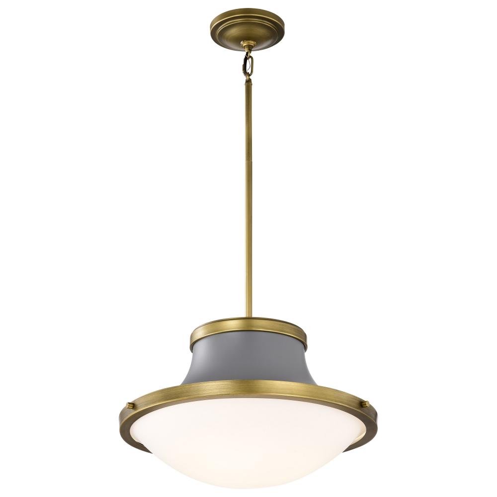 Lafayette 3 Light Pendant; 18 Inches; Gray Finish with Natural Brass Accents and White Opal Glass