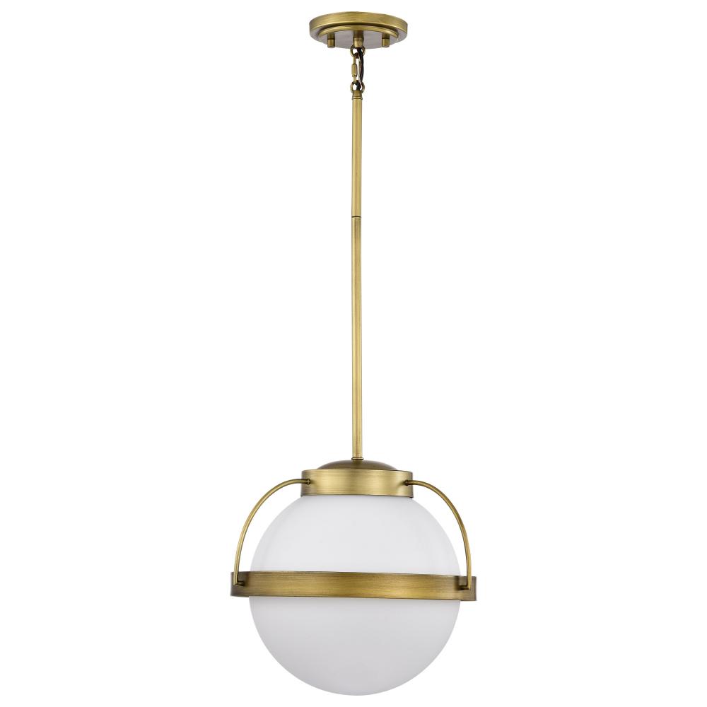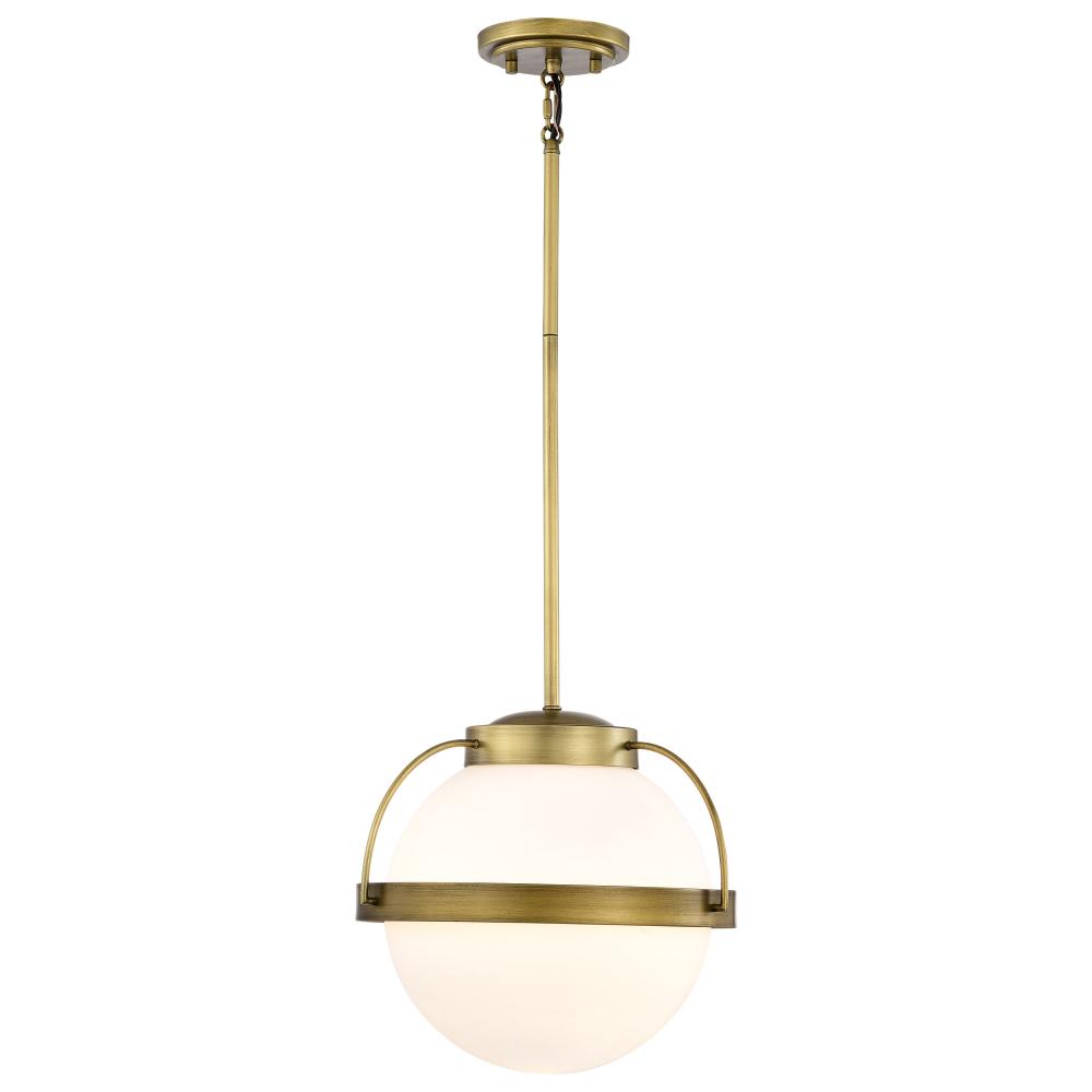 Lakeshore 1 Light Medium Pendant; Natural Brass Finish; White Opal Glass