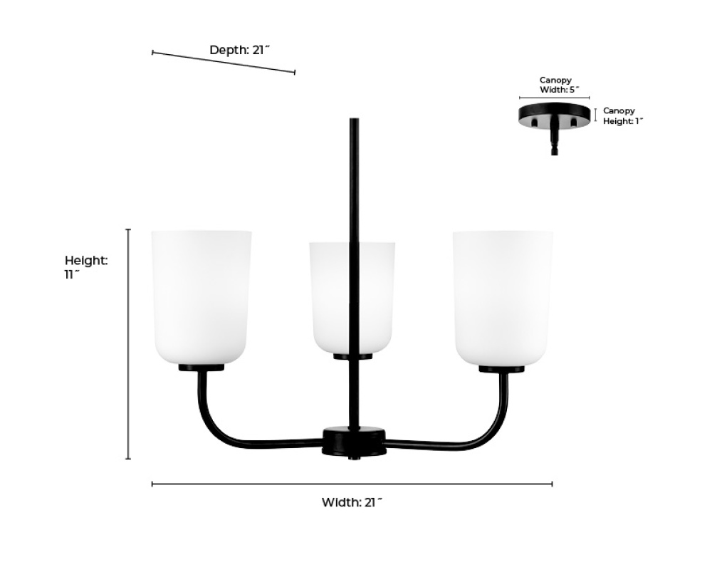 Laphia 21" Wide 3-Light Chandelier - Matte Black
