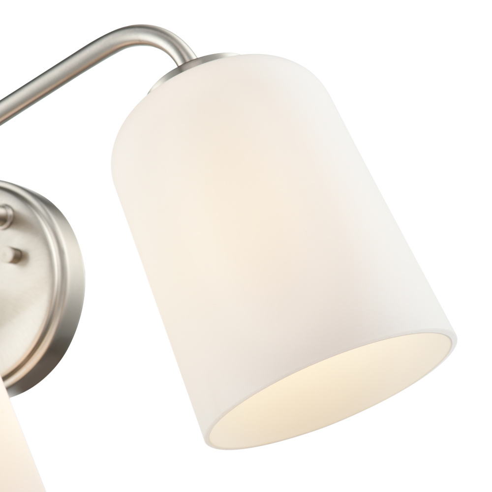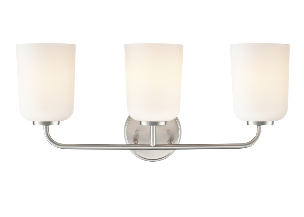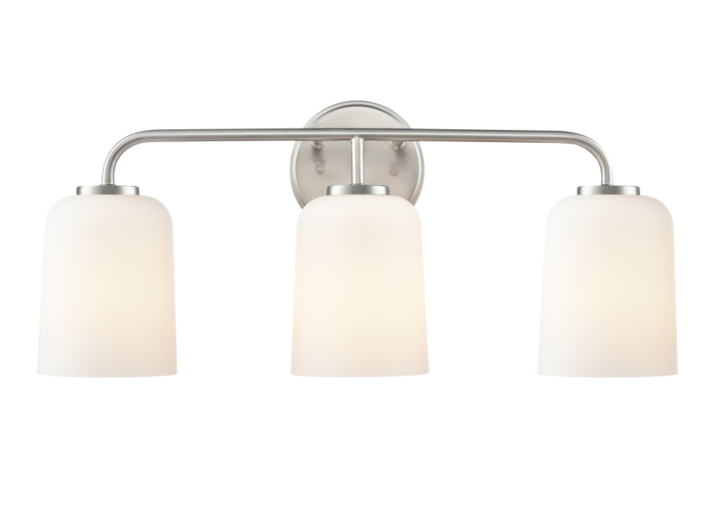 The Laphia Family features sleek lines, a graceful profile, and brilliant white, bell-shaped glass shades creating an ambient glow. The Family is available as sconce, chandelier, pendant, mini-pendant, semi-flush mount, flush mount, and an excellent vanity task light. Perfect for any interior plan from Craftsmen to modern farmhouse, these fixtures are finished in stylish brushed nickel, matte black, or modern gold.