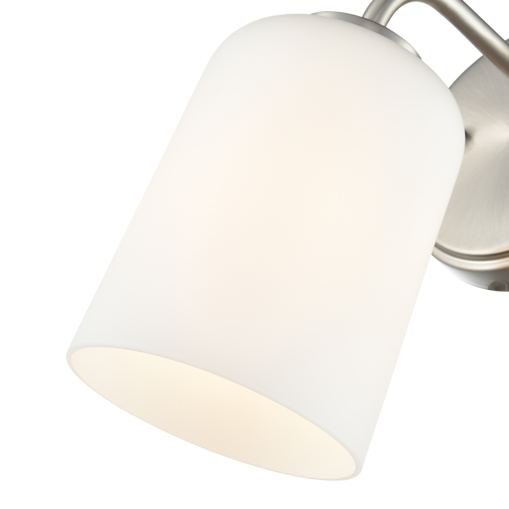 The Laphia Family features sleek lines, a graceful profile, and brilliant white, bell-shaped glass shades creating an ambient glow. The Family is available as sconce, chandelier, pendant, mini-pendant, semi-flush mount, flush mount, and an excellent vanity task light. Perfect for any interior plan from Craftsmen to modern farmhouse, these fixtures are finished in stylish brushed nickel, matte black, or modern gold.