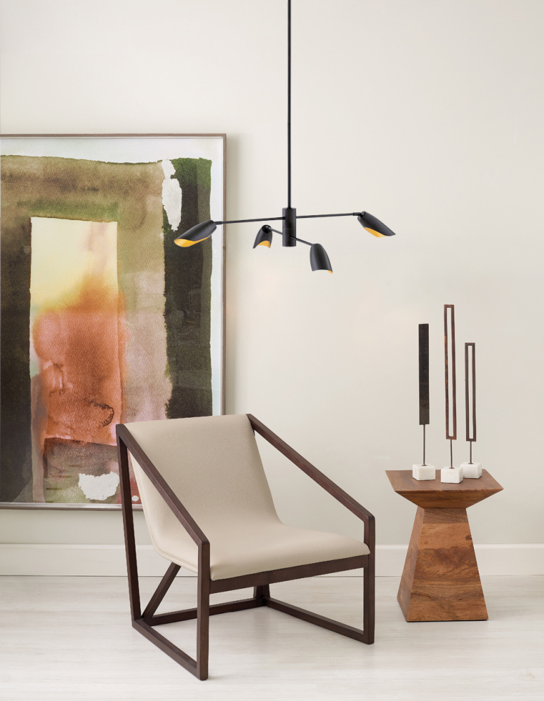 Bowery draws its inspiration from kinetic artistry. The thrilling sculptural silhouettes are evocative of free-moving mobiles from the early 20th century and inject any space with intrigue. The contemporary LED chandeliers and sconces feature pivoting arms and shades in two striking color combinations for maximum impact.