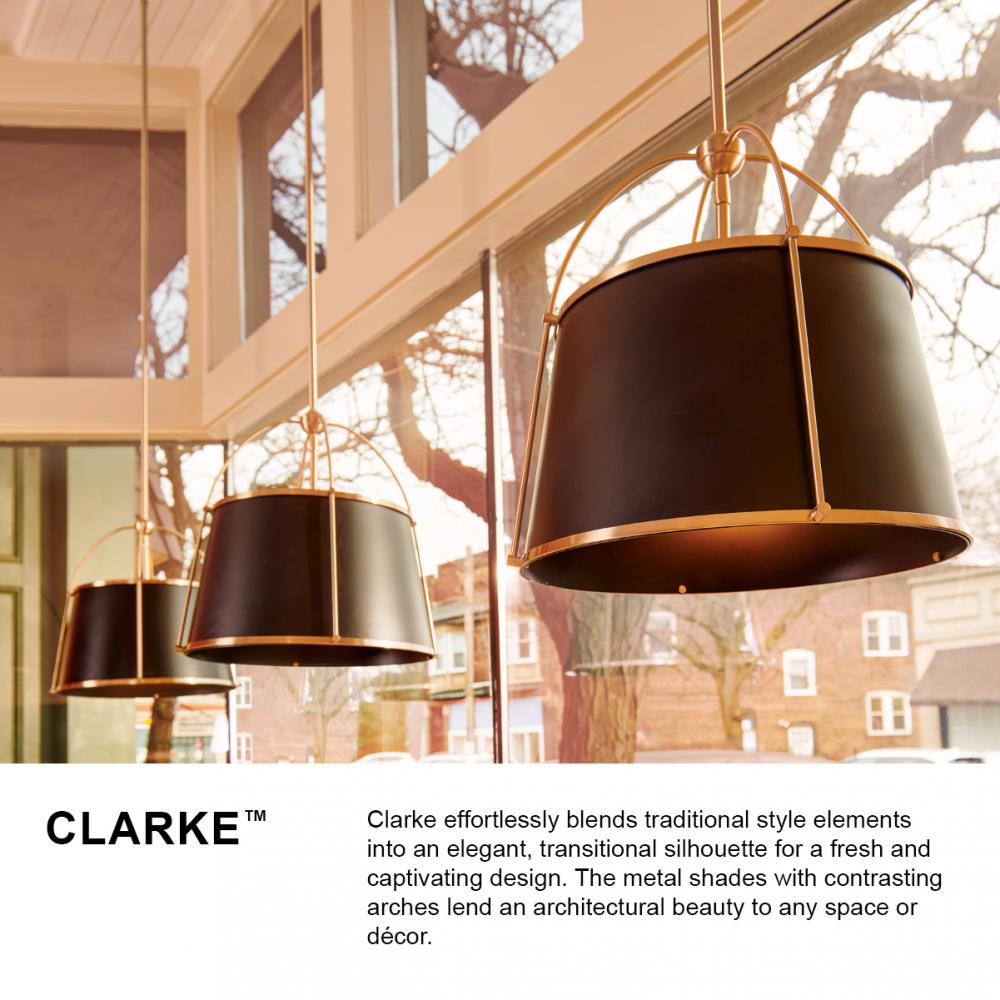 An effortless blend of classic style elements, Clarke’s transitional design is fresh and elegant. Its captivating metal or linen shade and contrasting frame lend architectural beauty to any space with a selection of sophisticated finishes to complement any décor aesthetic.