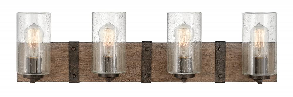 The fresh, rustic design of the Sawyer collection will enhance any living experience with a warm, cozy ambiance. The Aged Zinc finish with Distressed Black accents or Sequoia finish with Iron Rust accents paired with clear seedy glass offer a farmhouse chic style.