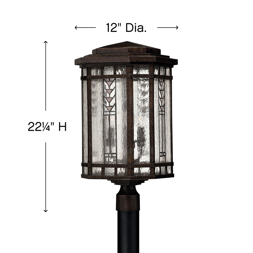 Tahoe makes a classic Arts & Crafts design statement in a cast aluminum construction with panels of clear seedy water glass and copper foil art glass accents.