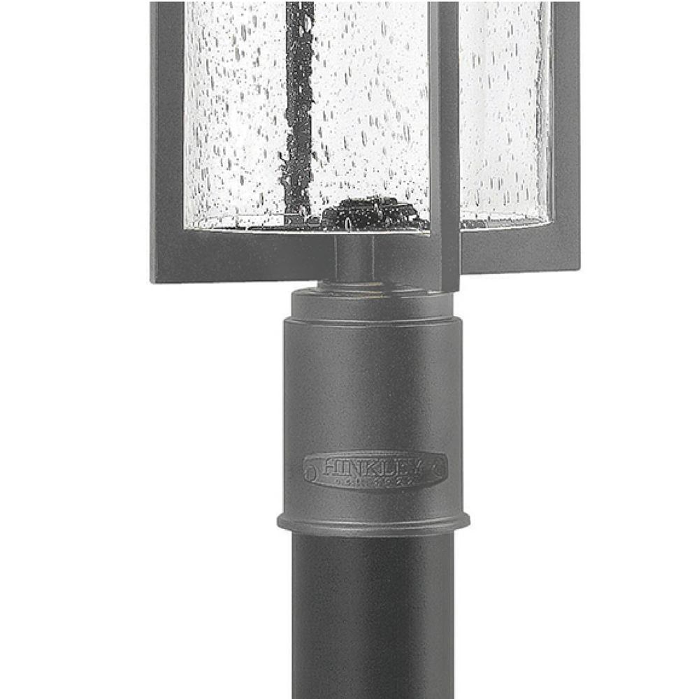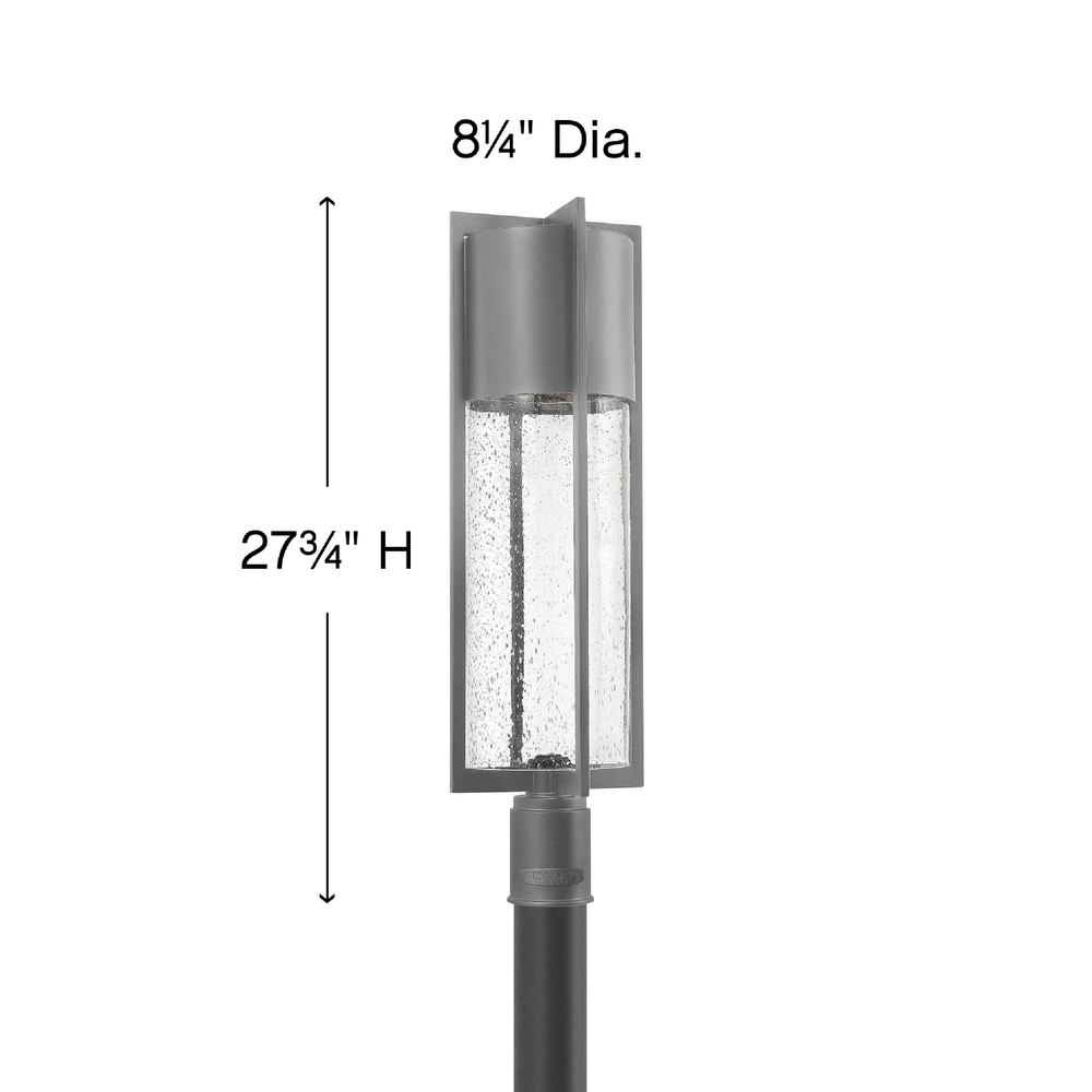 Shelter’s minimalist style in aluminum creates a chic, dramatic statement as the light from above grazes through its clear seedy glass. Shelter comes standard Dark Sky compliant.
