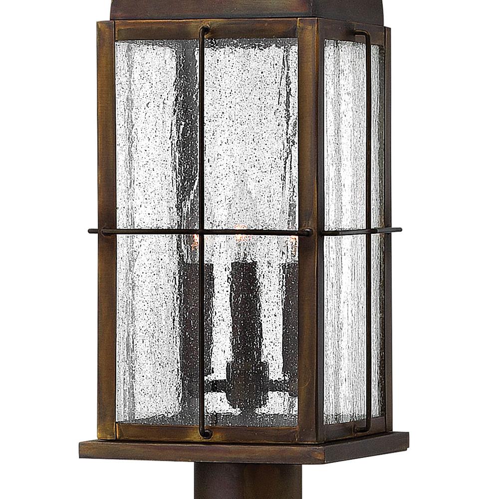 Bingham’s traditional style recalls a turn-of-the-century gas light reproduction. The vintage look is nautical in nature and recognizes Hinkley’s origins on the shores of Lake Erie. The aluminum construction features clear seedy glass and a Greystone or Sienna finish, while candelabra bulbing completes the authentic style.