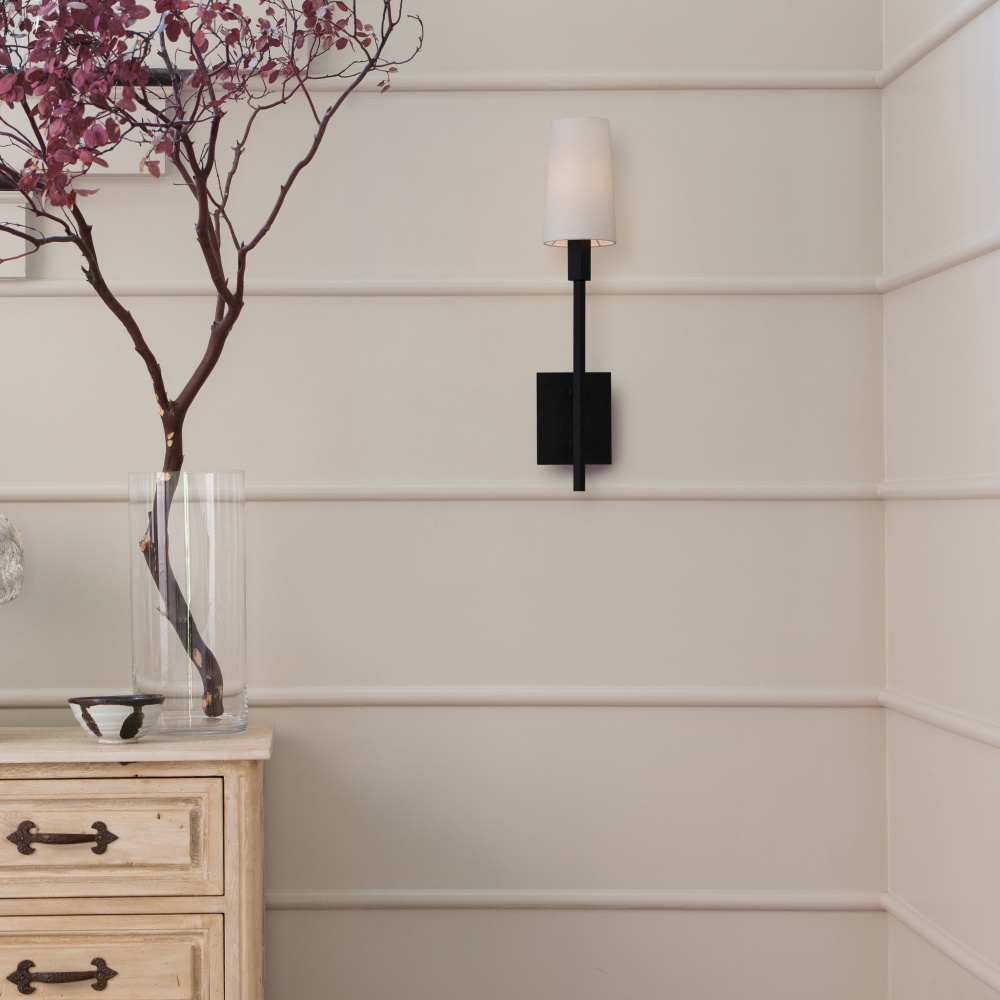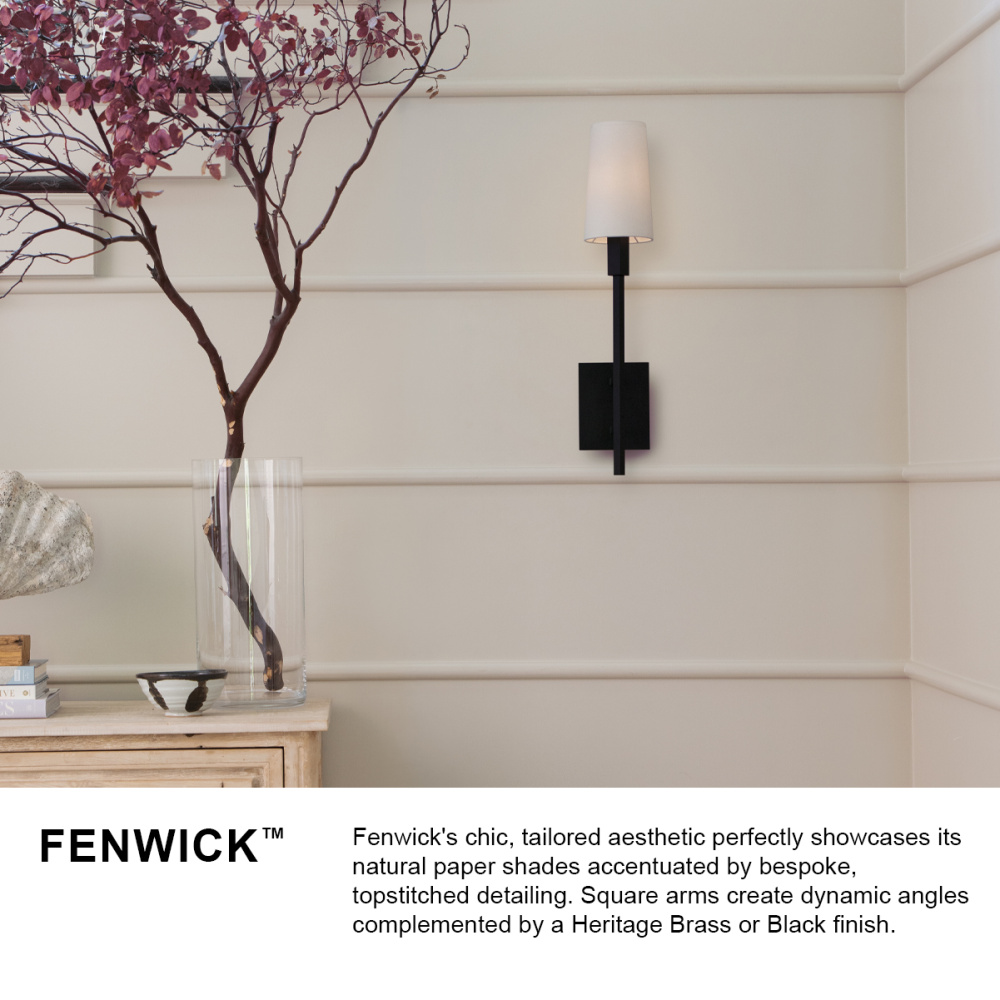 Fenwick’s chic, tailored aesthetic perfectly showcases its natural paper shades accentuated by bespoke, topstitched detailing. Square arms create dynamic angles complemented by a Heritage Brass or Black finish.