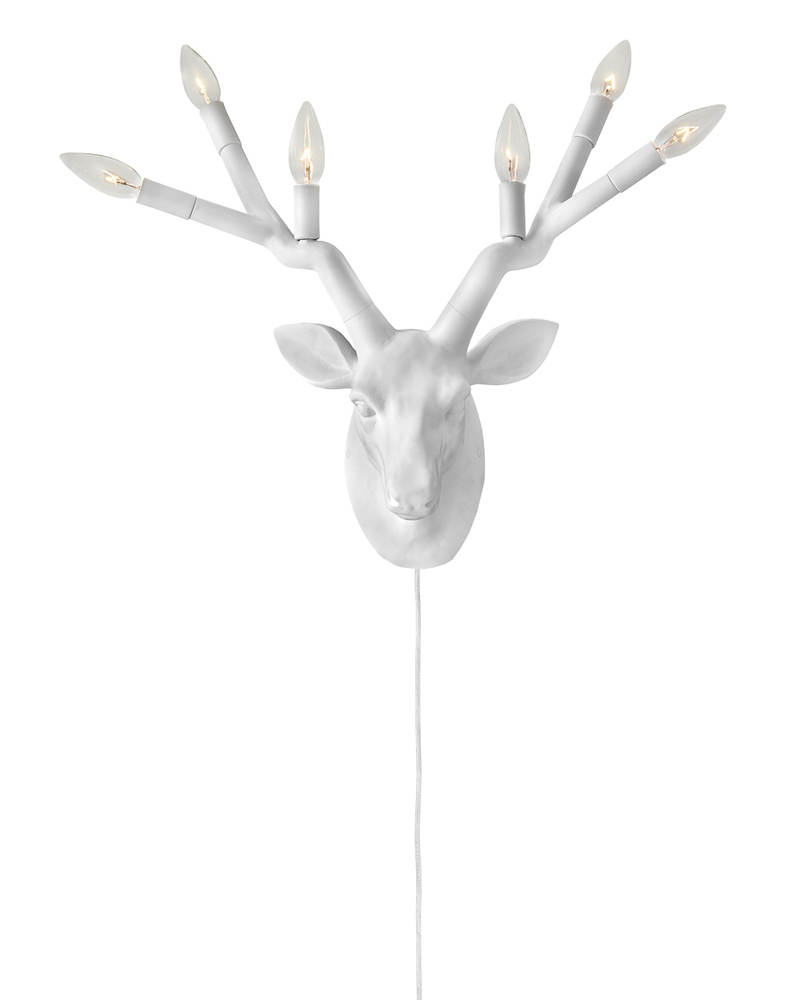 Yes, deer! A playful, contemporary take on traditional lodge décor, Stag is an over scaled sconce big on style. Featured in Chalk White or Black, Stag bounds into any space with illumination and charm all-in-one. Sconces feature a removeable black cord with on/off switch to suit anywhere you choose to roam.