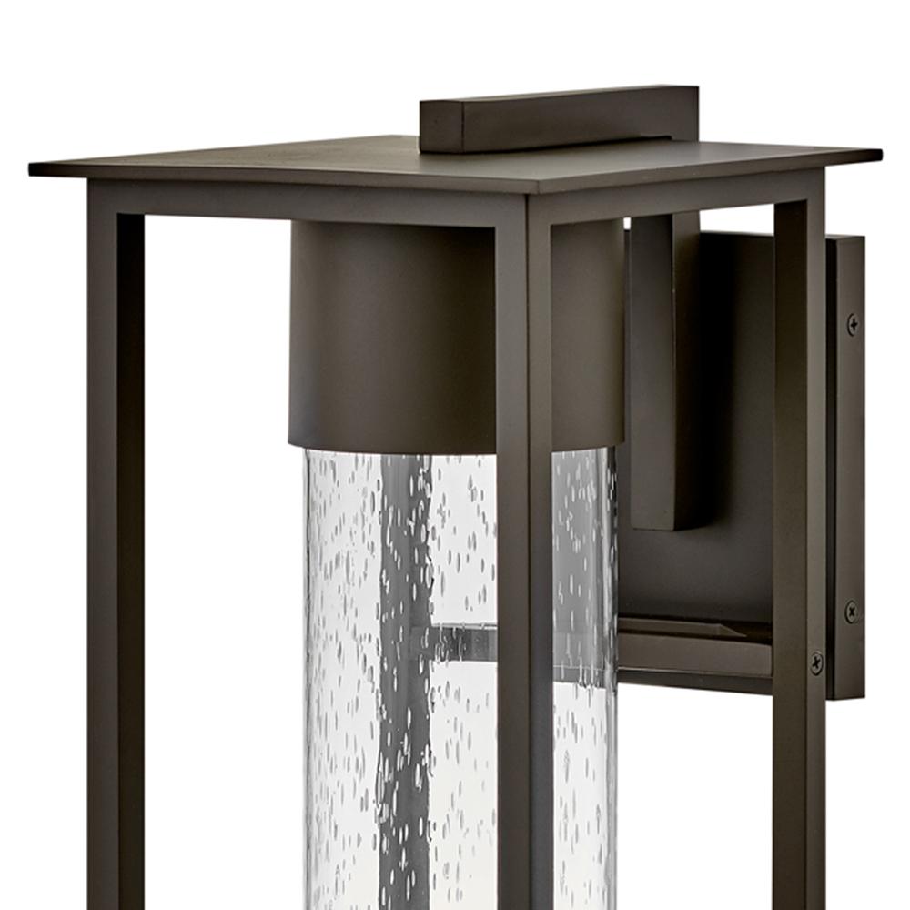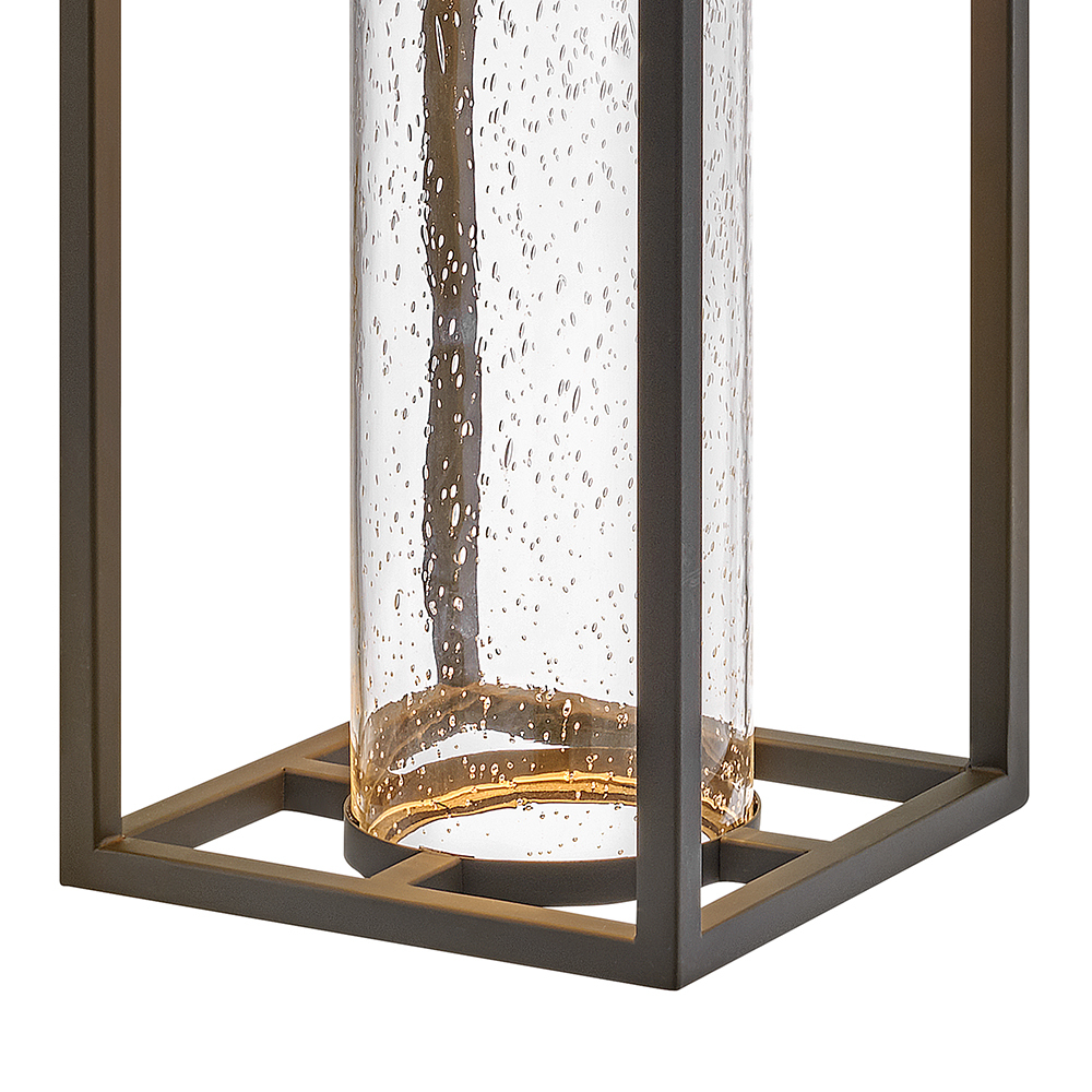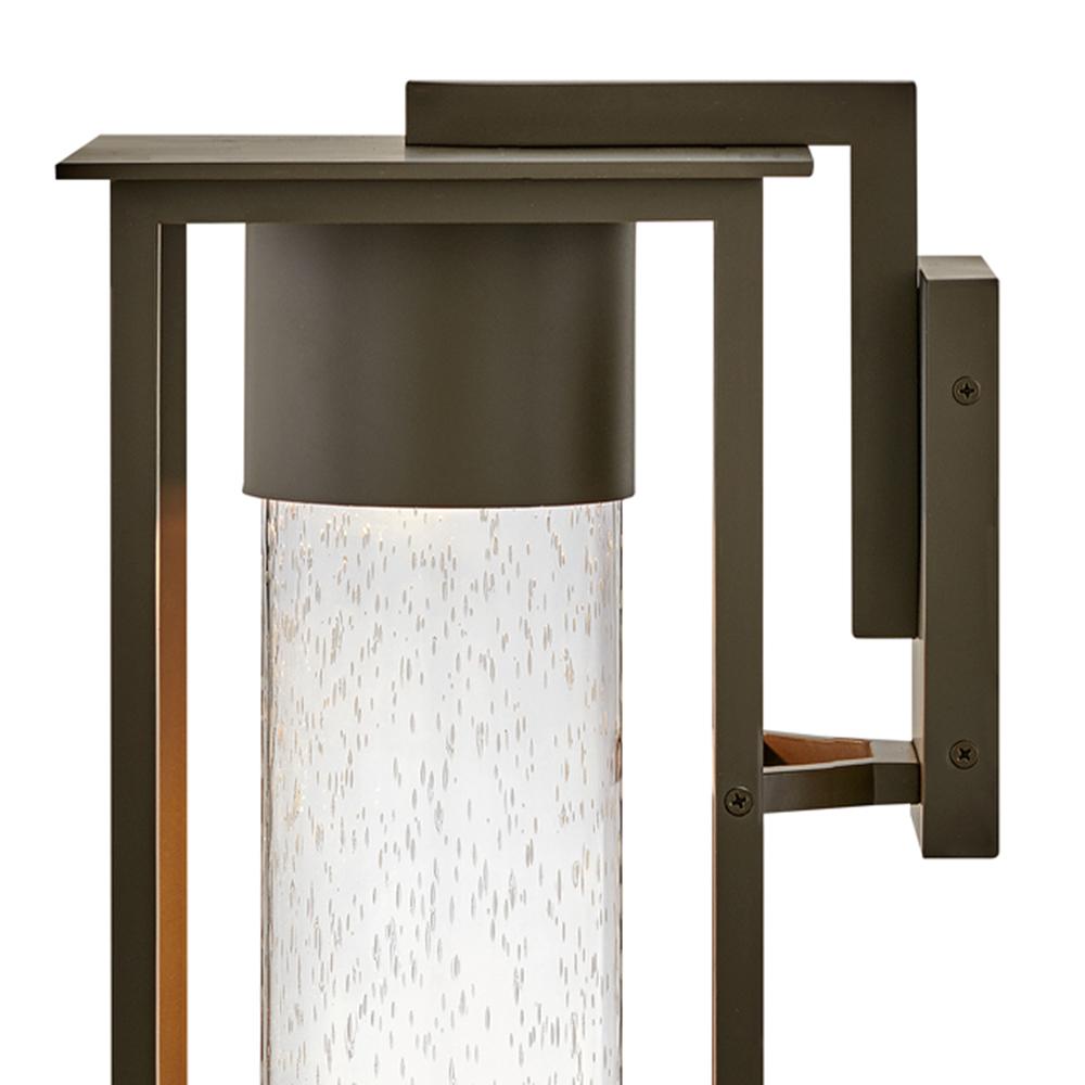 Coen is an instant favorite with timeless design featuresand a modern edge. Clear seedy glass exudes a radiant glow to make a home's exterior shine. This slender frame is constructed of composite materials, and coated with a finish that can withstand harsh elements. Available in a Black or Oil Rubbed Bronze, Coen is also Dark Sky compliant and includes an LED bulb.