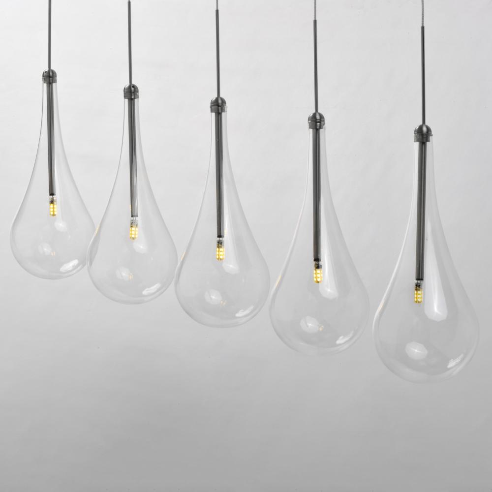 The new Larmes features an extended profile Clear glass shade that screws on to a Satin Nickel mount. Long life G4 LED offers considerable light with dimming capabilities.