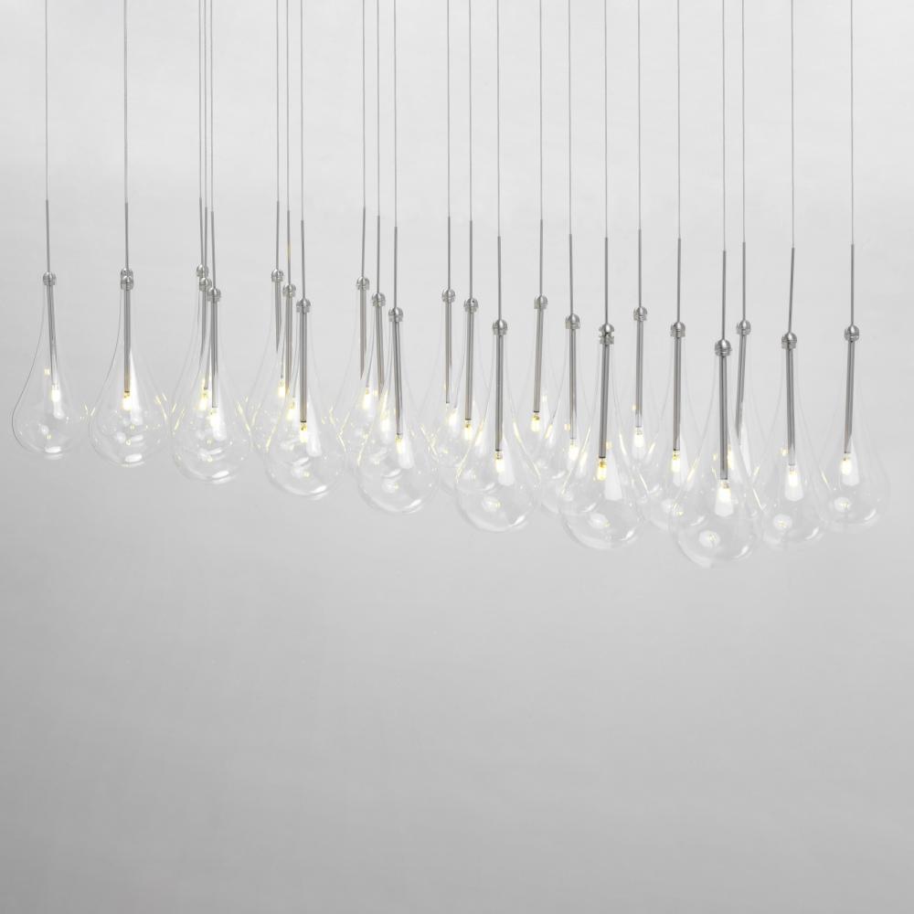 The new Larmes features an extended profile Clear glass shade that screws on to a Satin Nickel mount. Long life G4 LED offers considerable light with dimming capabilities.