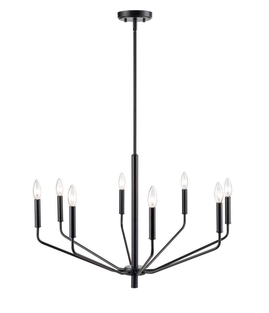 A contemporary twist on the classic Gothic design, it is available in a matte black and modern gold finish. The uniquely angled arms provide a distinctive look designed to beautifully enhance any interior space.