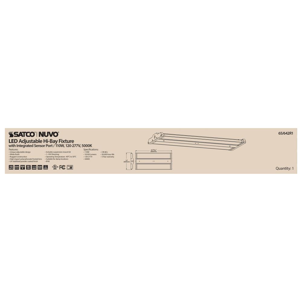 SATCO NUVO's 65-642R1 110 watt high bay LED fixture is a rugged lighting solution for commercial applications. Illuminate work areas and retail spaces with this durable, adjustable fixture. This dimmable fixture is sleek, functional, and delivers 50,00
