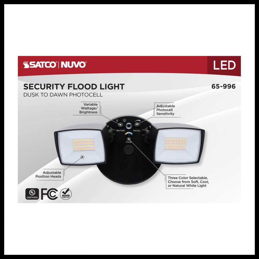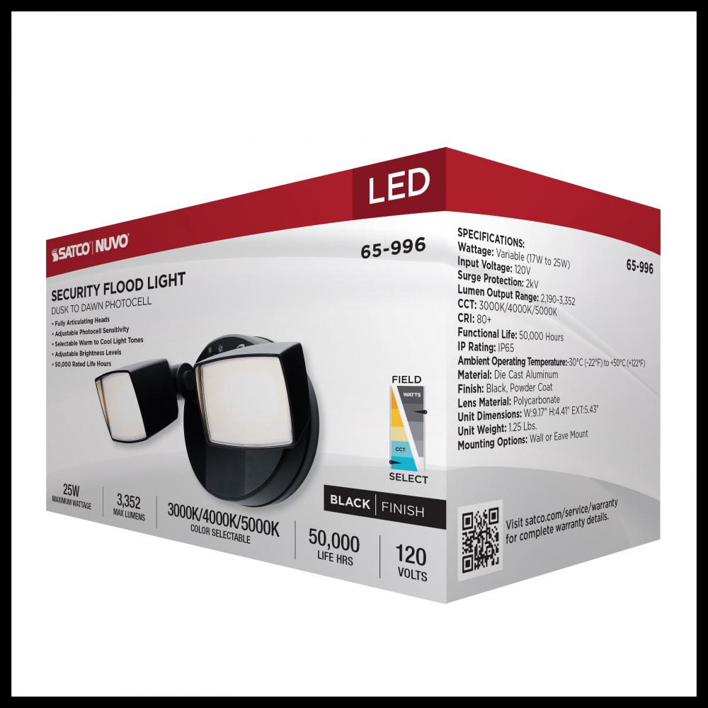 The SATCO NUVO 65-996 field-selectable dual-head LED security flood light sets a new standard for reliable and versatile safety lighting. Ideal for both residential and commercial use, this fixture can be easily mounted on walls or eaves to illuminate crit