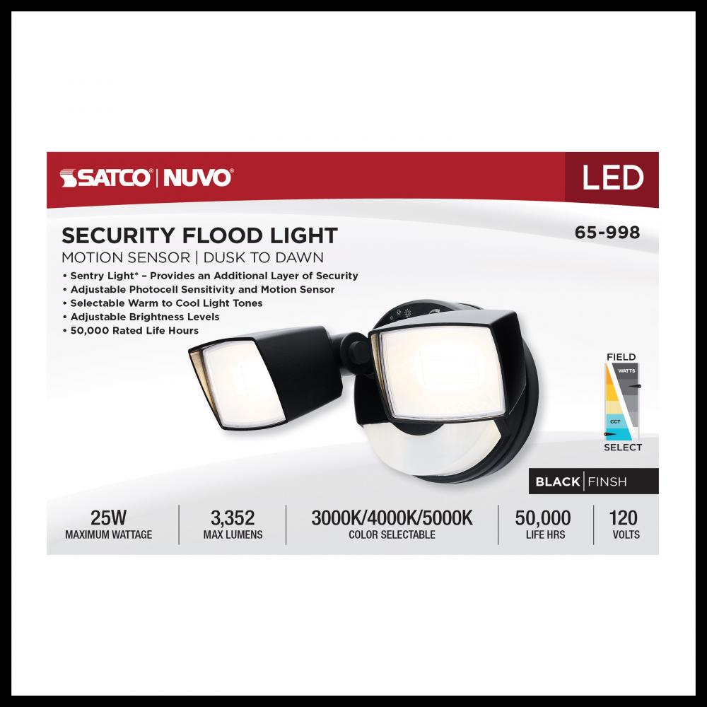 The SATCO NUVO 65-998 field-selectable dual-head LED security flood light sets a new standard for reliable and versatile safety lighting. Designed for both residential and commercial use, this fixture can be mounted on walls or eaves to effectively illumin