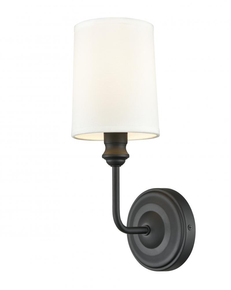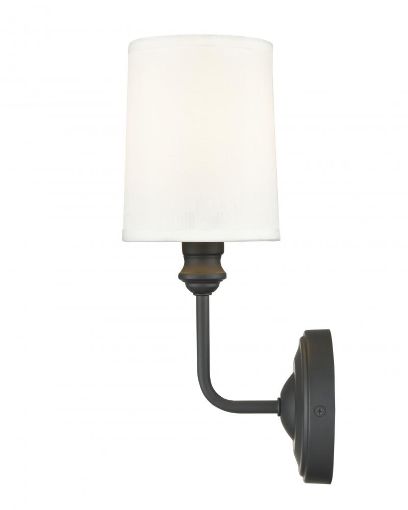 The Leena Family of sconce lighting is reminiscent of vintage candleholders influenced by Early American design. Finished in matte black, polished nickel, or vintage brass, the sconces are available as 1-, 2-, and 3-light options. These classic fixtures are finished with white fabric shades for a warm glow and are perfect for hallway, bath, or bedroom.