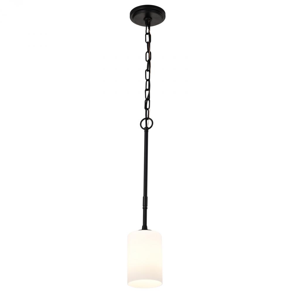 Liam; 1 Light Mini Pendant; Matte Black; White Opal Glass
