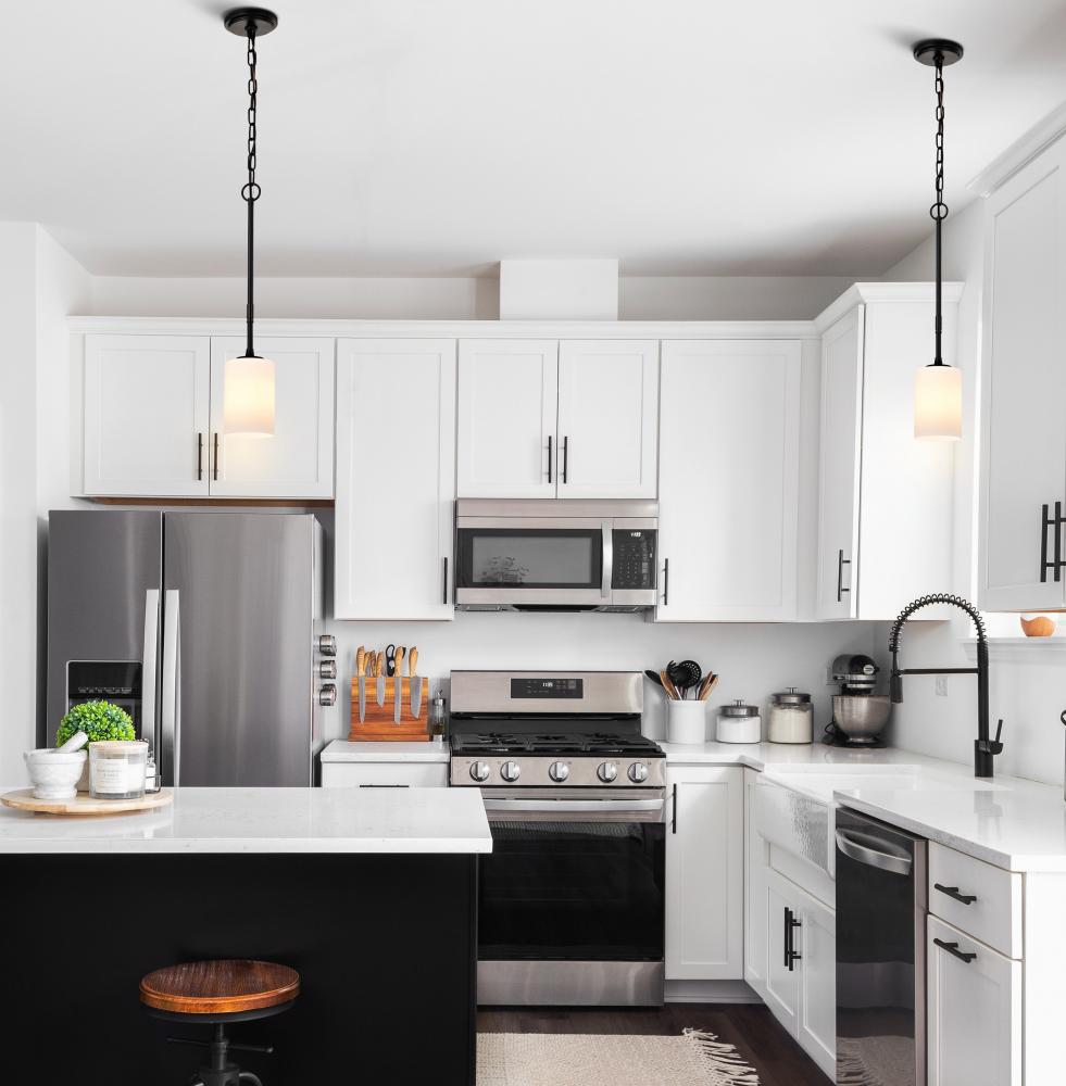 Seamlessly blending transitional design with contemporary accents, the Liam Collection exudes understated elegance. Choose from sophisticated finishes in matte black or burnished brass, perfectly complemented by the soft glow of white opal glass. With its