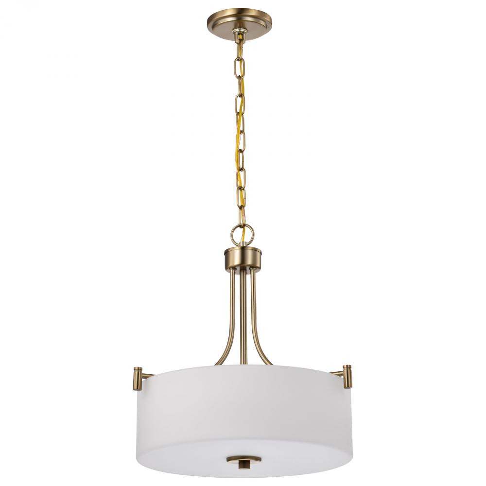 Liam; 3 Light Pendant; Burnished Brass; White Opal Glass