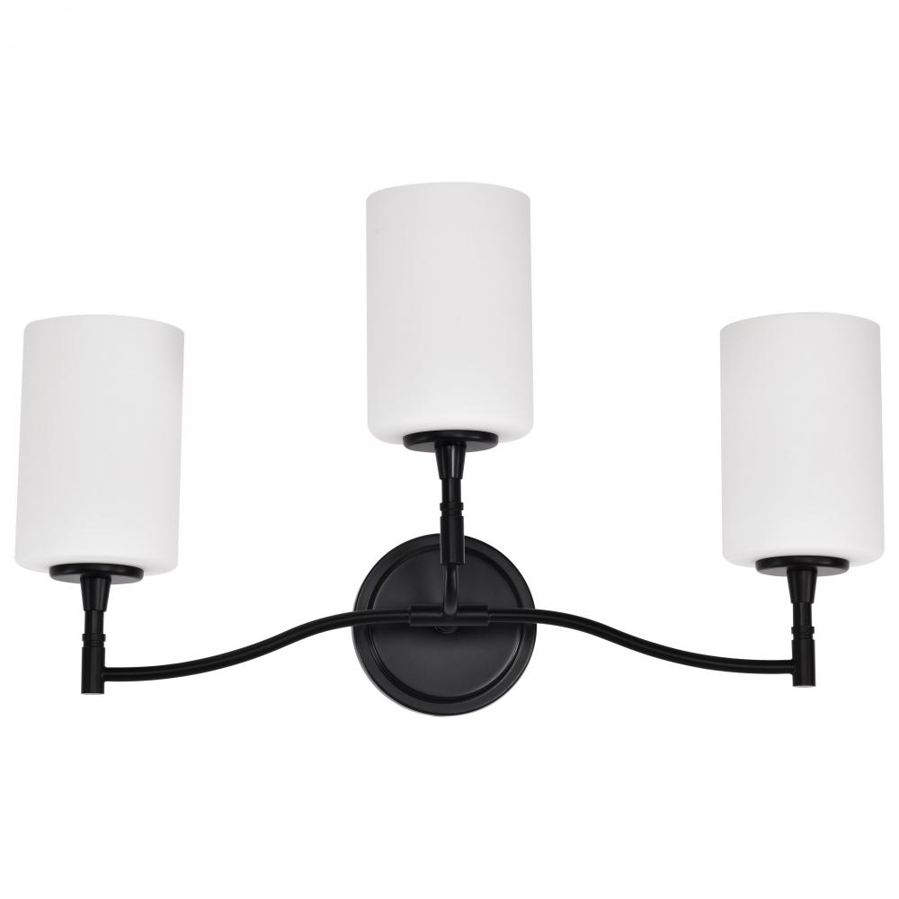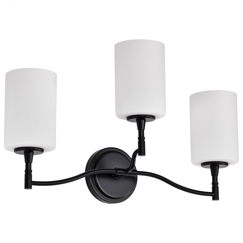 Liam; 3 Light Vanity; Matte Black; White Opal Glass