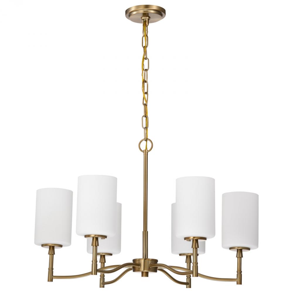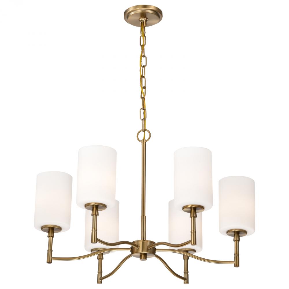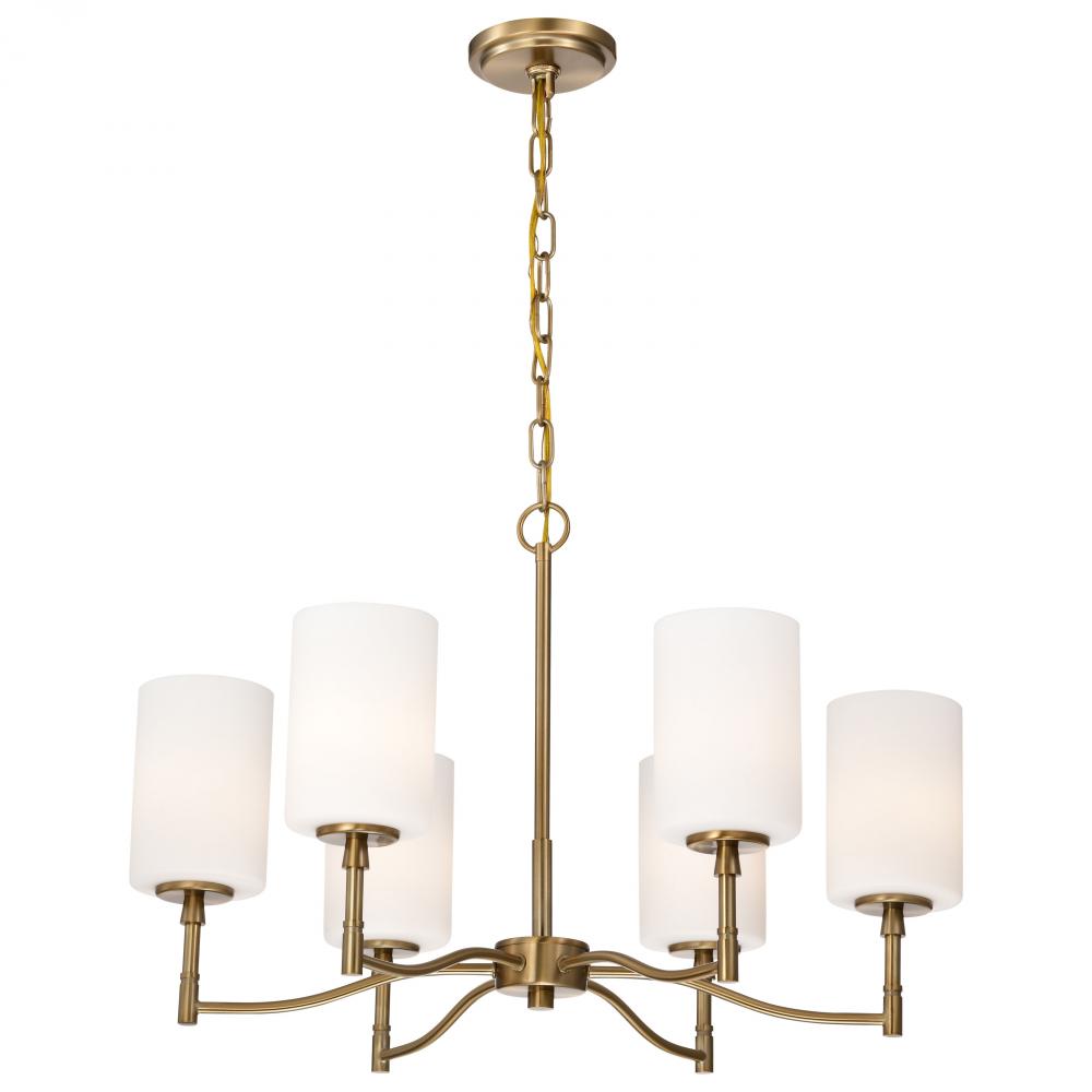 Liam; 6 Light Chandelier; Burnished Brass; White Opal Glass