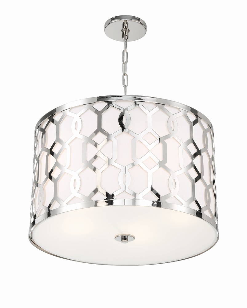 A striking geometric statement, the Jennings collection pairs Libby Langdon's signature classic design with a modern flair. The Jennings is an open, graphic metal design with a white silk shade. A perfect marriage of classic and modern creating the ideal elegance.