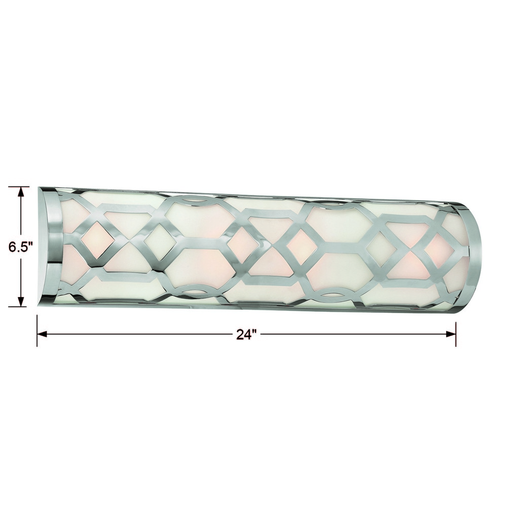 A striking geometric statement, the Jennings collection pairs Libby Langdon's signature classic design with a modern flair. The Jennings is an open, graphic metal design with a white glass shade. A perfect marriage of classic and modern creating the ideal elegance.