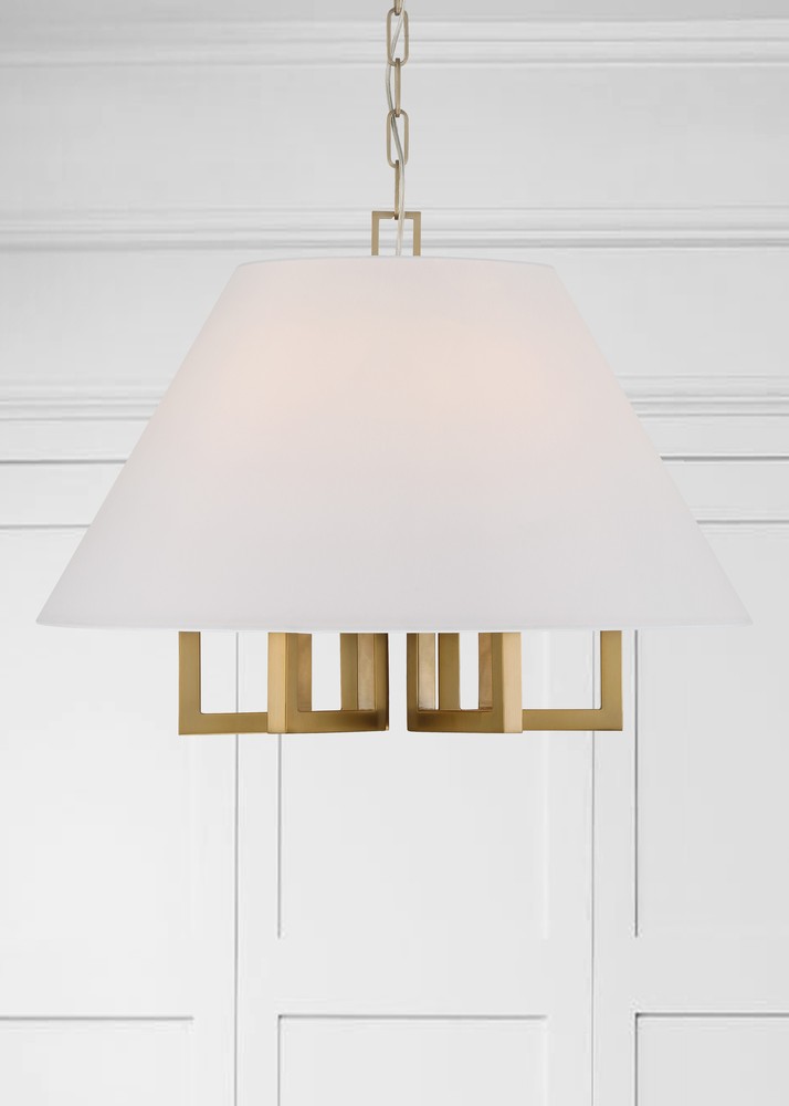 The signature Libby Langdon attention to detail is apparent in the Westwood collection. This light features an angular frame topped with crisp white shades for an electric yet modern design. Perfect for a dining area, living room or even entry way, this fabulous light will add the perfect accent to any space.