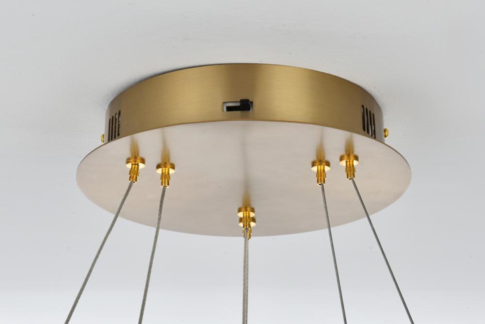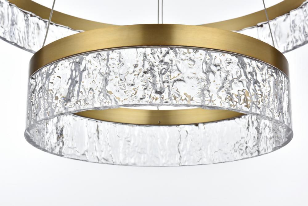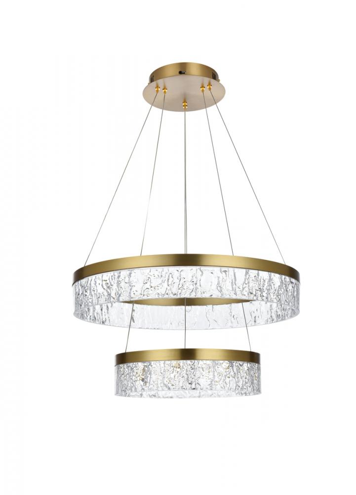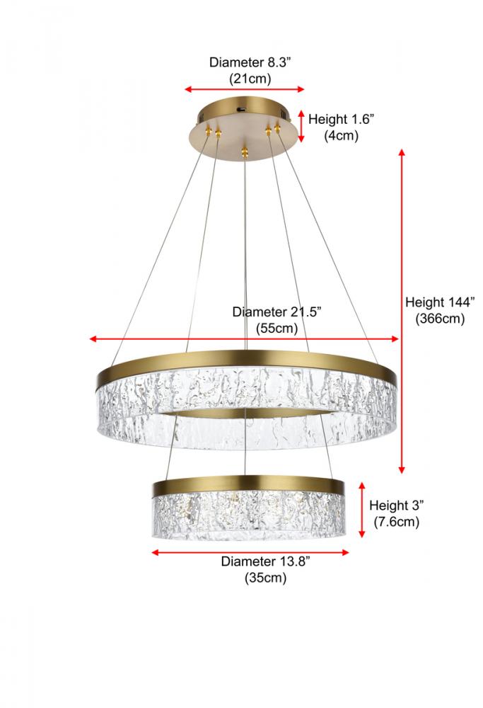 Illuminate your space with the Linden 22 inch LED chandelier, featuring a distinctive two-tier ring design that gracefully diffuses ambient light through captivating ripple-cut elements, adding a touch of modern elegance to your surroundings. Enhance the contemporary allure with integrated LED lights, offering subtle and energy-efficient illumination. Crafted with precision, this chandelier combines a durable iron and aluminum frame with acrylic elements for longevity and modern sophistication. Rest easy with UL-listed certification, ensuring stringent safety standards. Illuminate your home with sophistication and efficiency, as the Linden chandelier effortlessly merges contemporary design with functional brilliance. with a simple flick, effortlessly transition between three distinct color temperatures—3000K for warm and cozy moments, 4500K for a balanced ambiance, and 6000K for a crisp, invigorating brightness. This innovative toggle switch empowers you to set the mood and adapt the lighting to suit various occasions. Whether you seek a relaxed evening glow, a neutral and focused atmosphere, or a vibrant and energizing radiance, our chandelier provides the flexibility to cater to your preferences.