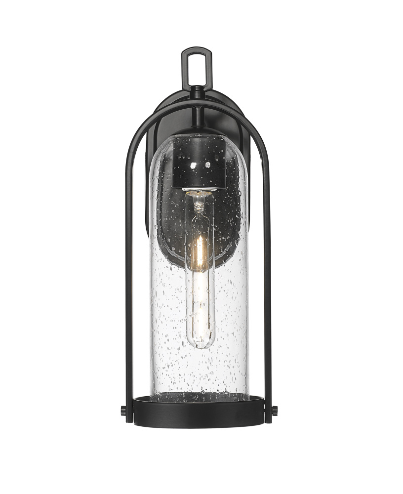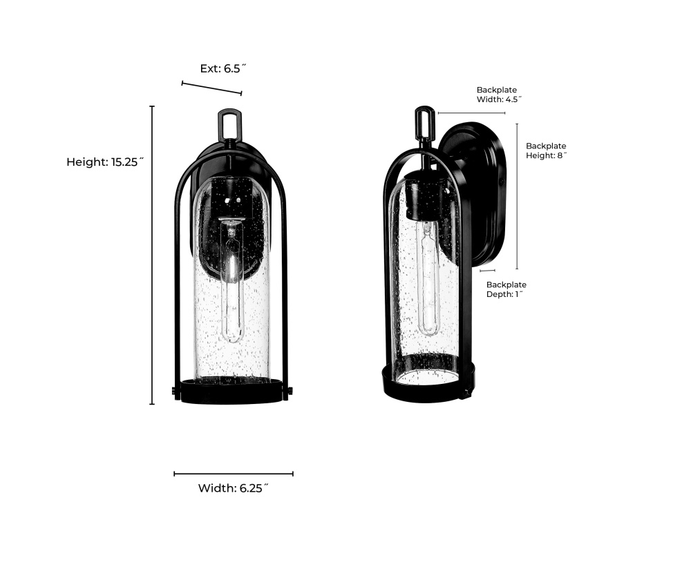 The Luxio Family of outdoor lighting is a fashionable take on the classic lantern profile. The birdcage-inspired metalwork is enhanced with modern styling and creates the perfect framing for the elongated clear-seeded glass shade. Available as 1-light sconce or 1-light hanging lantern and finished in powder coat black, these dynamic fixtures invoke the perfect look for any exterior, from ultra-modern to Mission Revival.